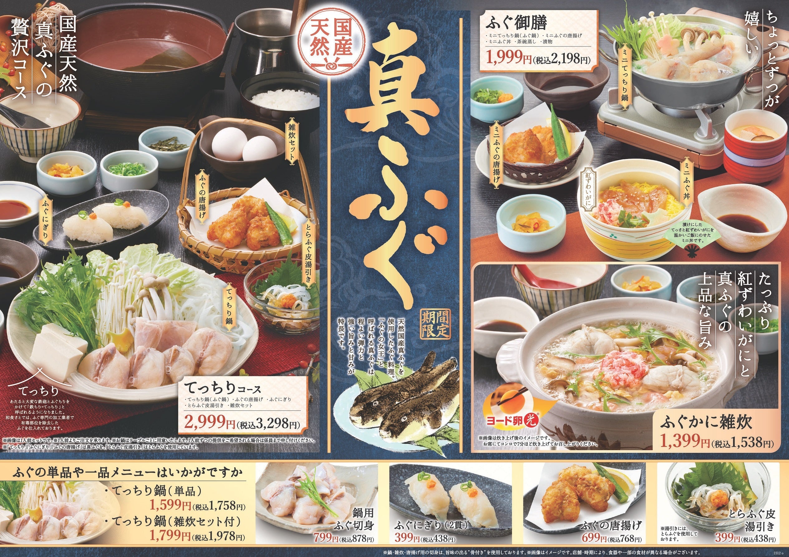 「国産天然 真ふぐ」の食べ放題コースや「てっちり鍋」など、、、期間限定で真ふぐフェア開催♪