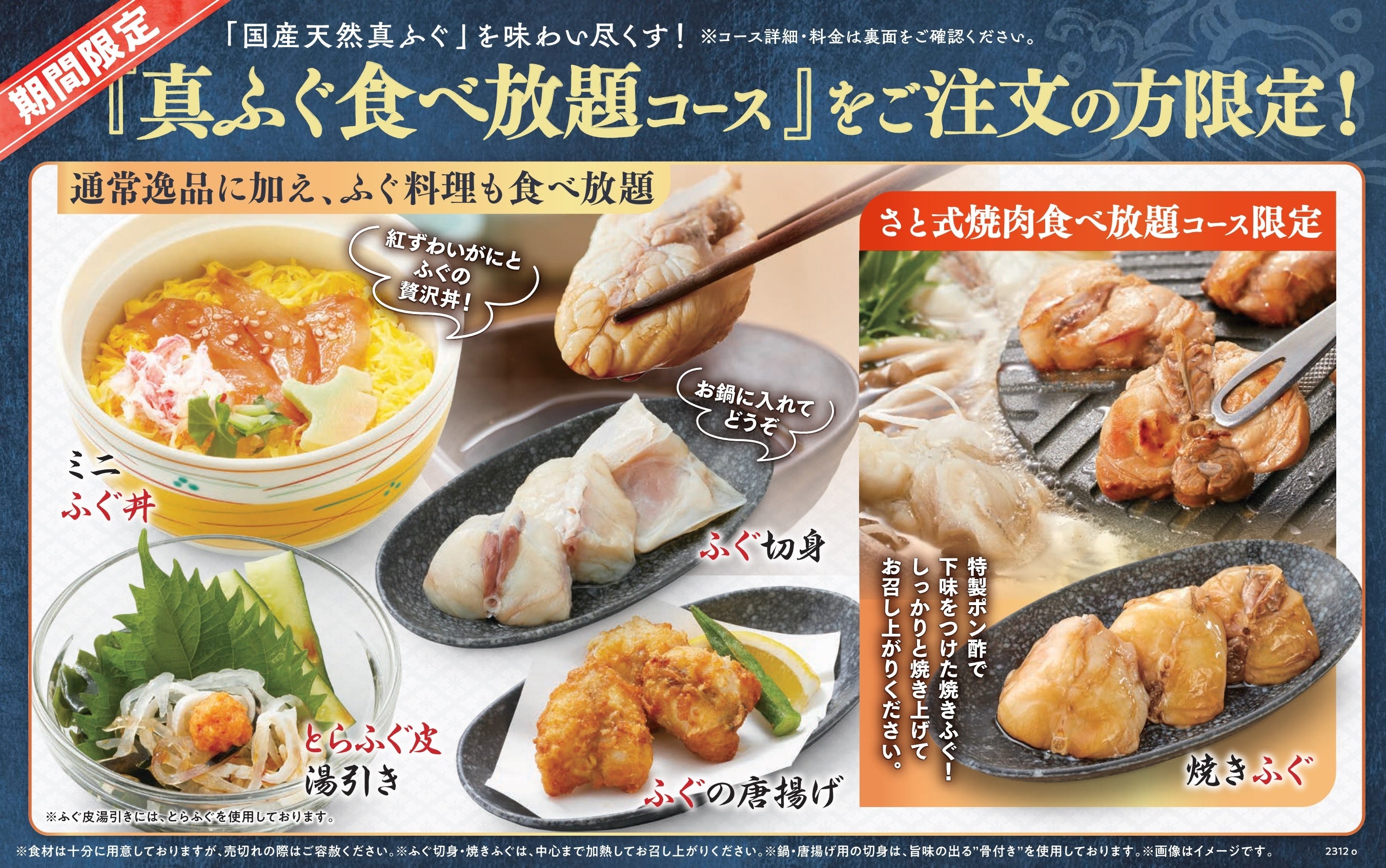 ■和食さとオフィシャルHP 真ふぐ食べ放題 https://sato-res.com/news/2023/12/26211.html