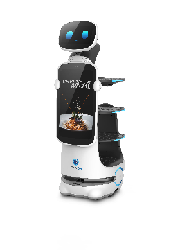 大型サイネージ付き最新型配膳・配送ロボットです、高い柔軟性と安定性や環境視覚検出、マーケティングに役立ち、スマートでお客様を楽しませる製品です。また、業界TOPの通過性能、最小通過幅59cmで、従来応用しづらいシーンにも可能性を生み出します。