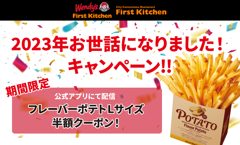 実施内容:当社アプリ会員限定で、フレーバーポテトLサイズを通常価格 430円のところ、50%OFFの 215円でお楽しみいただけるクーポンを配信します。