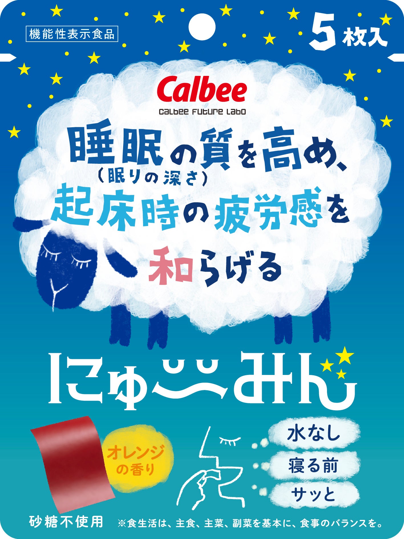 カルビーは、マテリアリティ(重要課題)に「人々の健やかなくらしと多様なライフスタイルへの貢献」を掲げ、「2030ビジョン」とその実現に向けた成長戦略の中で「食と健康」領域を推進しています。その一環として睡眠領域に注力し、2020年11月、カルビー初の機能性表示食品である睡眠サポート食品『にゅ~みん』を発売。2022年3月には、睡眠状態の可視化技術を手掛ける株式会社S’UIMIN(本社:東京都渋谷区、代表取締役社長 柳沢 正史、以下S’UIMIN)との戦略的パートナーシップを締結しています。