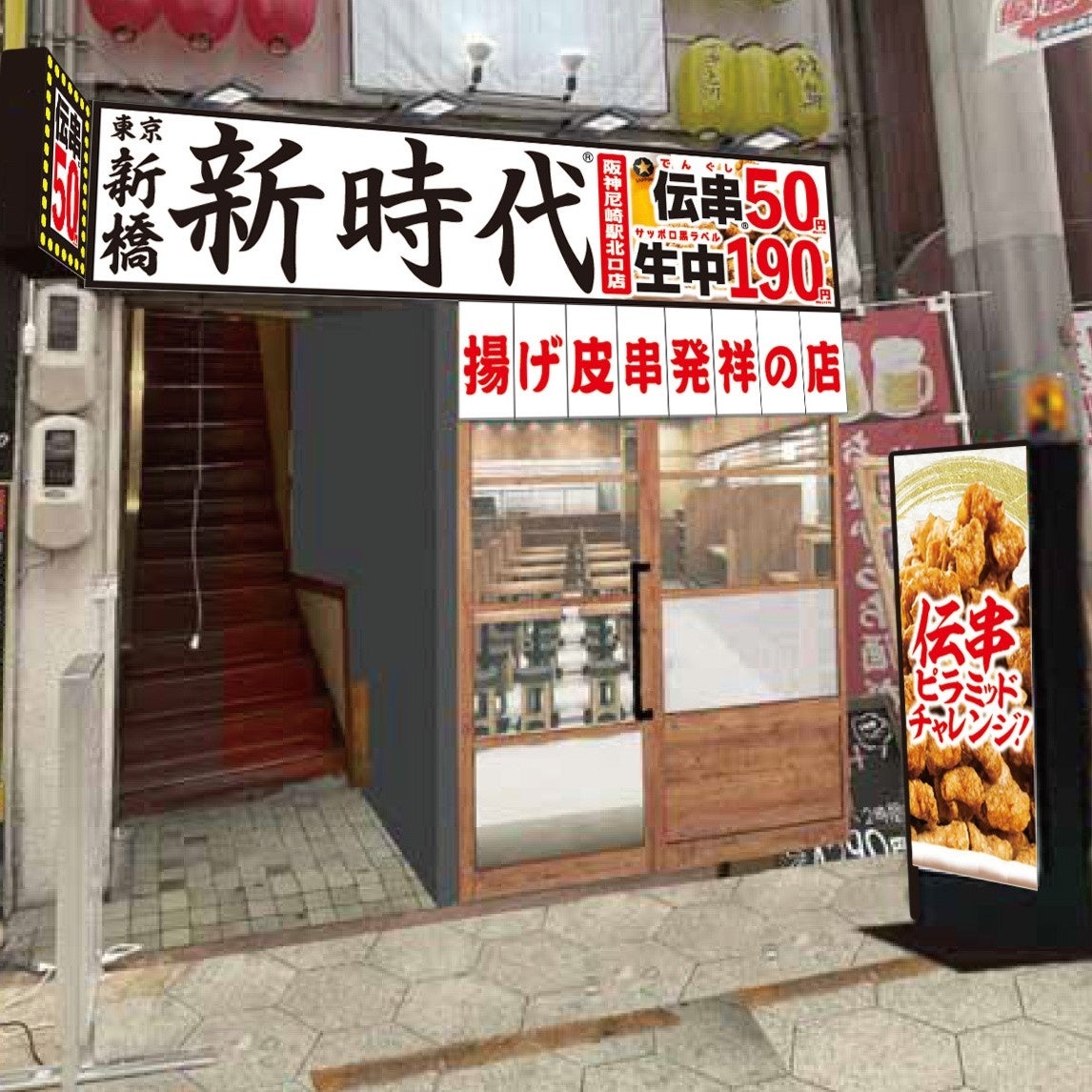 全国100店舗の居酒屋『新時代』は、値上げをせずに奮闘中です!累計販売本数1億本の鶏皮串(伝串)1本50円・生ビール(サッポロ黒ラベル)1杯190円をはじめとして全商品、未だ値上げをしておりません。