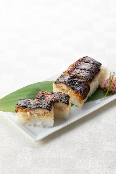 ↑●<京の加悦寿司>焼鯖寿し(1本)税込1,380円/独自のタレに漬けこみ、丁寧に焼き上げました。