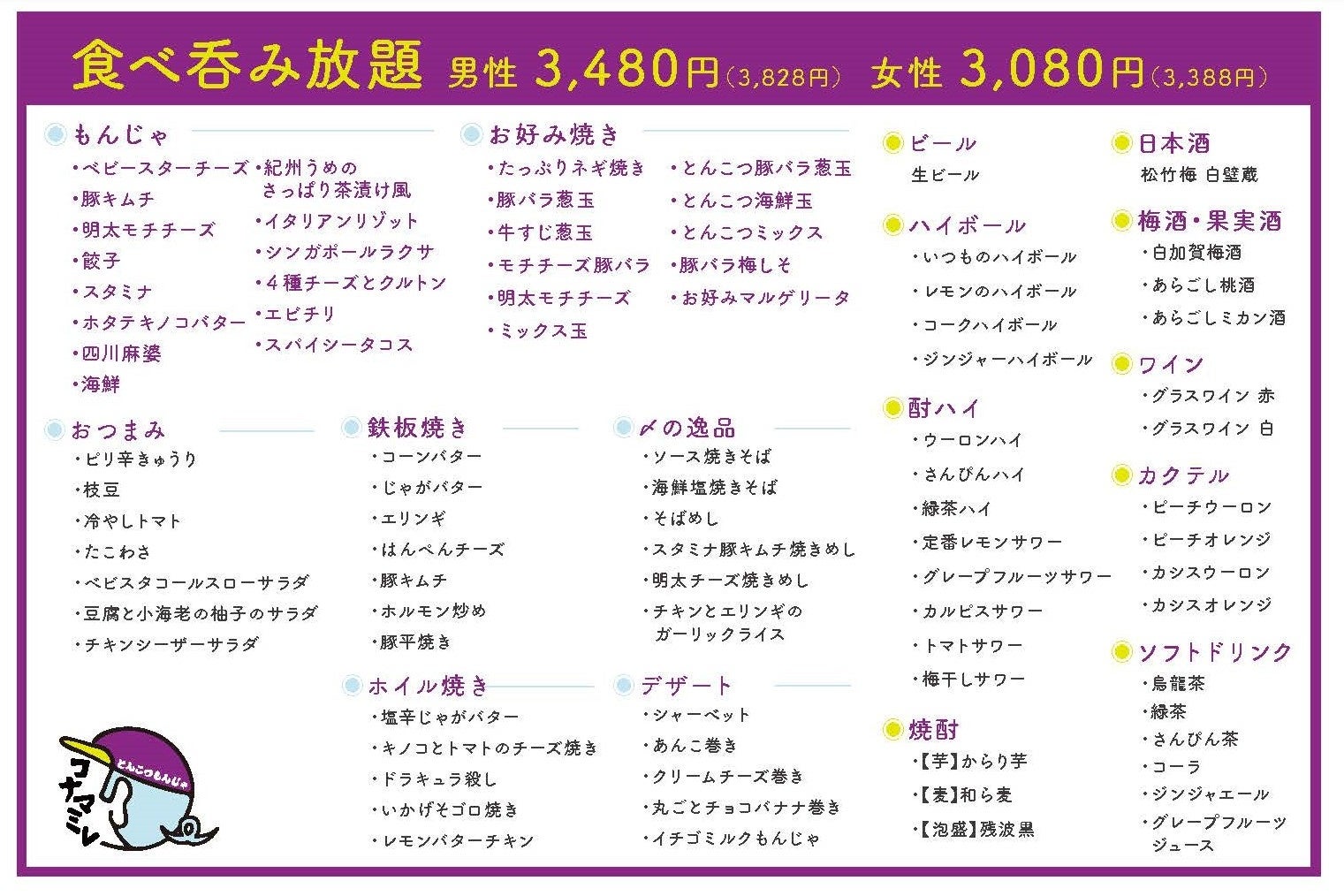 もんじゃ食べ飲み放題もご用意してます!