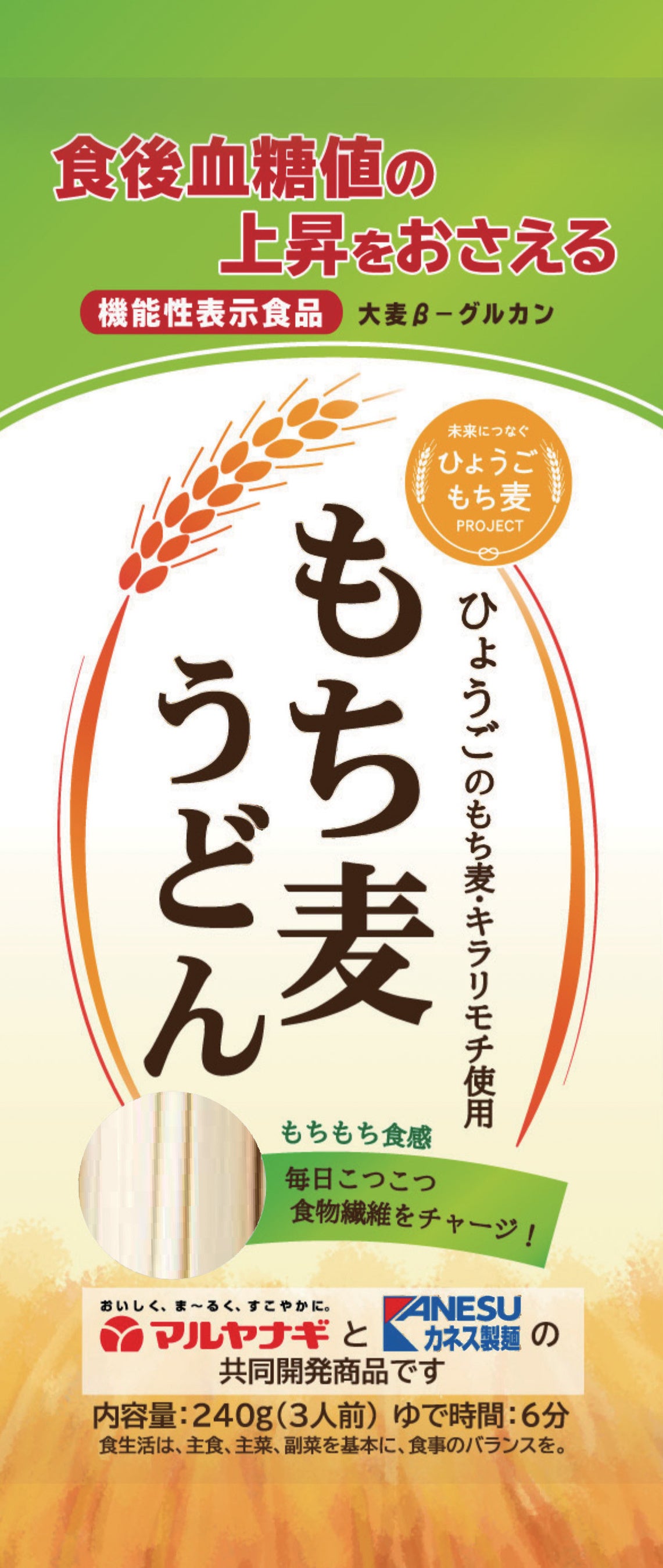 播州ラーメンでも有名な地元の製麺所遠藤コンスさんがもち麦粉を使った「もち麦うどん」にして販売します。