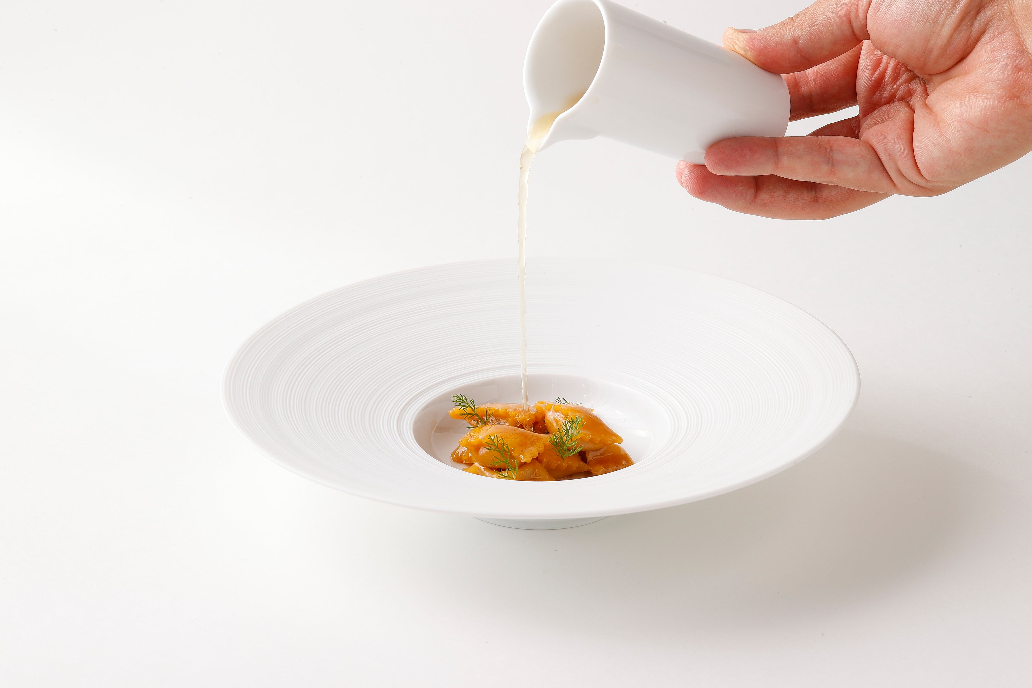 限定メニューでは、ほんのりレアに焼き上げた帆立に、佐賀県産のサフランのソースとキャビアを合わせた一皿や、香り高い白トリュフのタリオリーニ、イタリアでクリスマスのもてなしの料理としても親しまれている、ピエモンテの伝統的なラビオリ「アニョロッティ・デル・プリン」をプロシュートのコンソメスープで仕上げた一皿など、このシーズンならではのあたたかく華やかなメニューをご用意いたします。