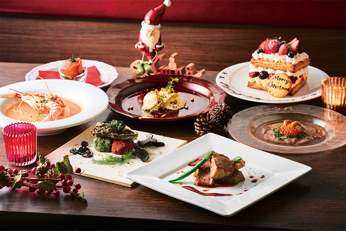 すべてのコースでデザートをパティシエ特製クリスマスケーキに変更可能(+1,650円)です、