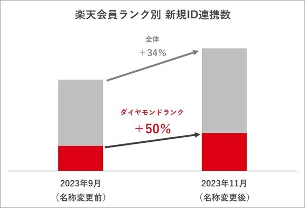 ぐるなびは、2023年10月2日(月)より飲食店情報サイト「ぐるなび」の名称を「楽天ぐるなび」へと変更し、この名称変更後、楽天会員の中でも最も楽天ポイントを積極的に活用する「ダイヤモンドランク」の会員による新規楽天ID連携会員(ネット予約で楽天ポイントが貯まるようぐるなび会員IDと楽天IDを連携するユーザー)が増加しています。このことから、年明け以降の新年会や歓送迎会シーズンにおいても「ネット予約で楽天ポイントが貯まる」楽天ぐるなびサイトを通じた飲食店予約の更なる活性化が見込まれます。