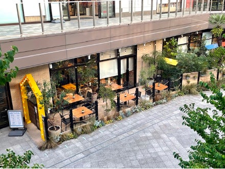 FARMER’S KITCHEN 南町田グランベリーパークの中ではテラス席の入口や各テーブルなどで「Wan!Pass(ワンパス)」のチェックインを行えるようにツールを配置して展開します。
