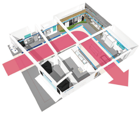 今回の展示ブースは3つのゾーンをあえて繋げて、通路から一気にブース最奥まで見渡すことができるように設計することで、製品の具体的な活用例と共に、高い回遊性を実現しています。また、来場者の方々がブース内を歩くだけで「冷凍加工」から「冷凍物流」「小売」まで、実体験に近い形で体感することができるよう配慮しました。