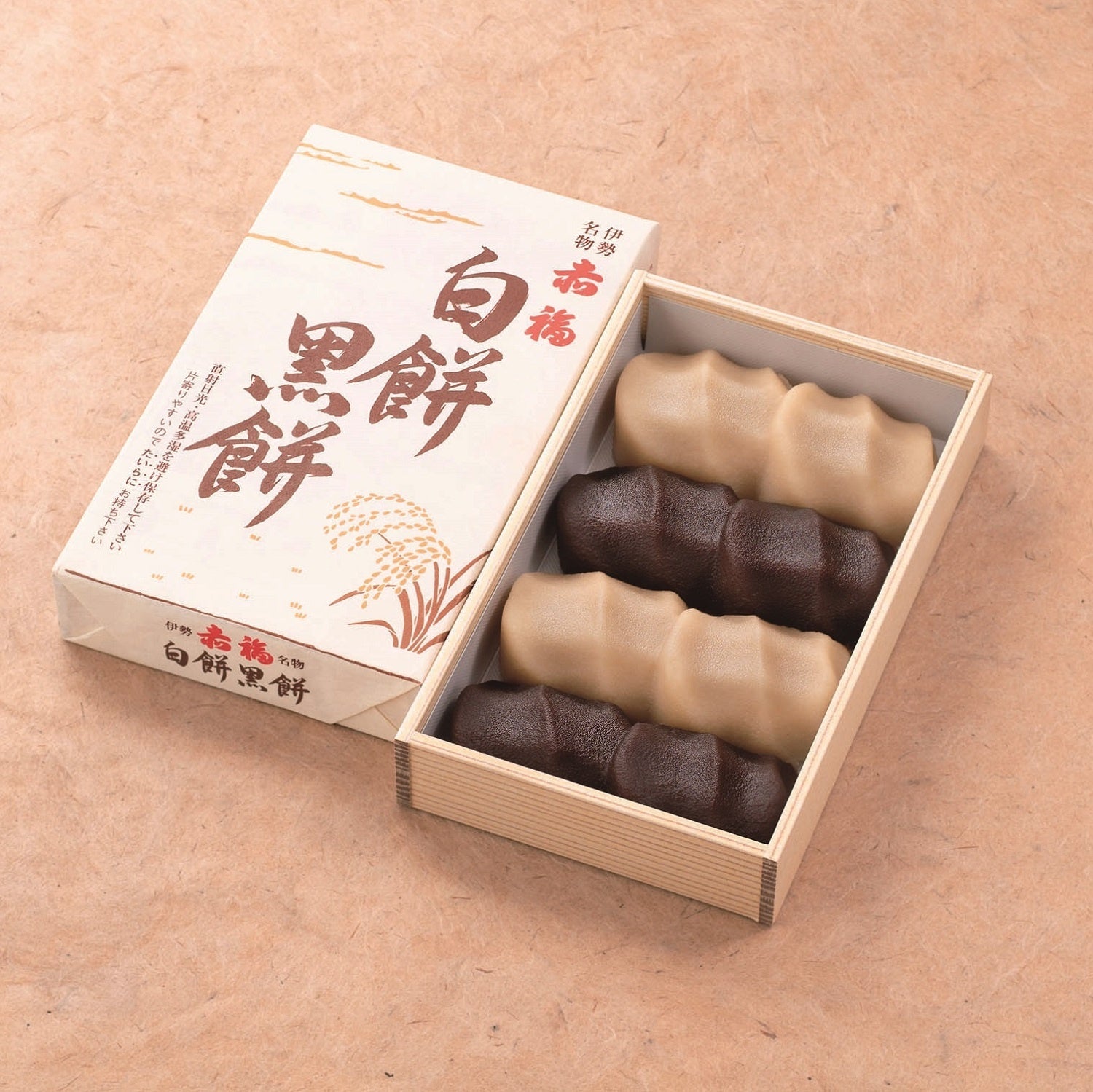 【三重】赤福/(写真上)白餅黑餅(8個入)1,100円 (写真下)赤福餅(12個入)1,300円[通期]