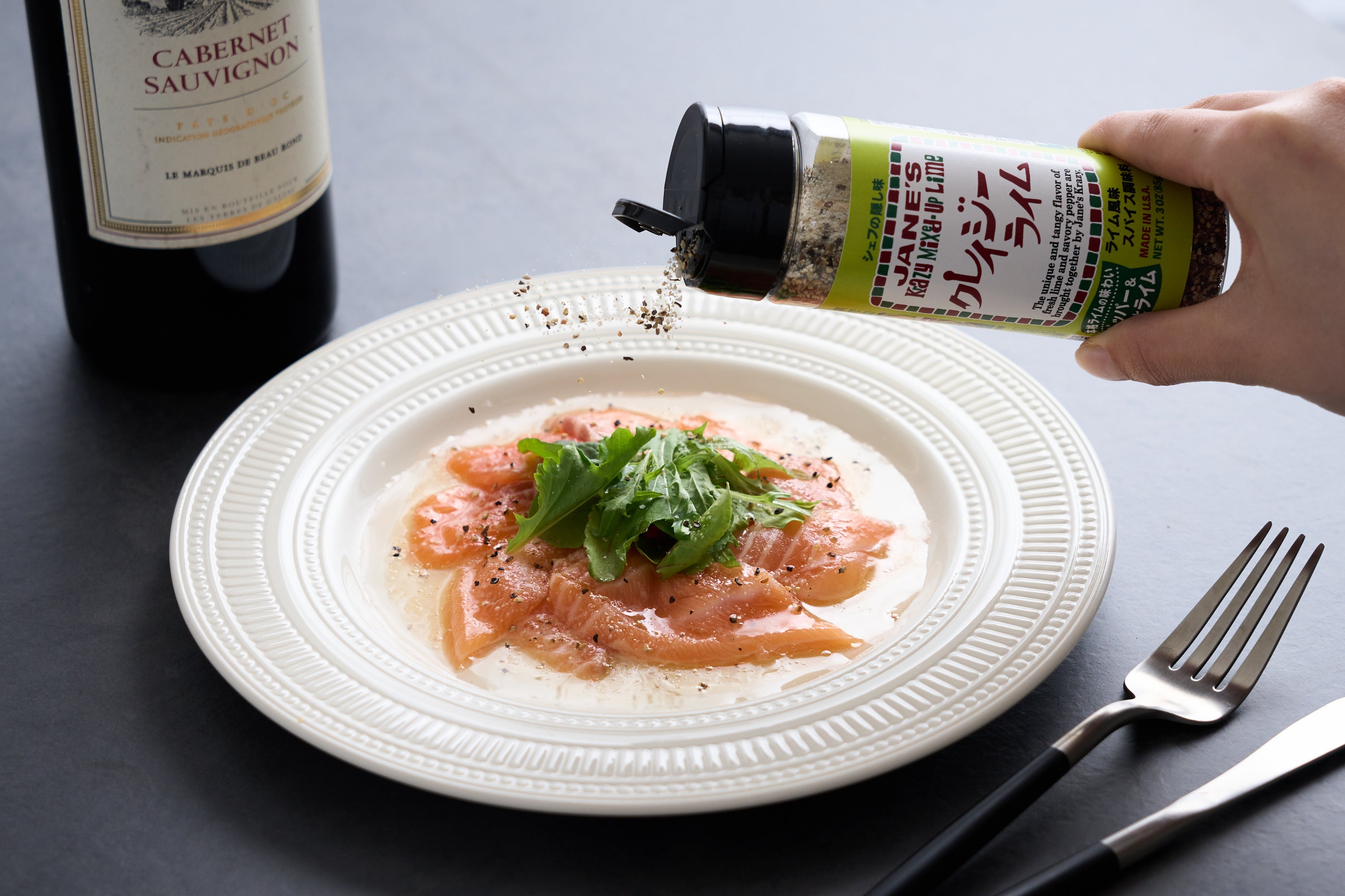 ライムの風味が豊かな『クレイジーライム』は、アジアン料理・メキシカン料理以外の日常料理にもおすすめです。ライムの他、ブラックペッパーや岩塩が含まれているため、例えば、鶏の唐揚げやサーモンのカルパッチョ、白身のお魚などにかけると、ライムが引き立ち柑橘系のさっぱりとした味付けにまとまります。