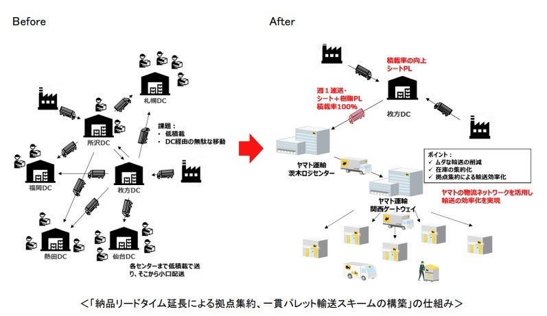 ~納品リードタイム延長による拠点集約、一貫パレット輸送スキームの構築~
