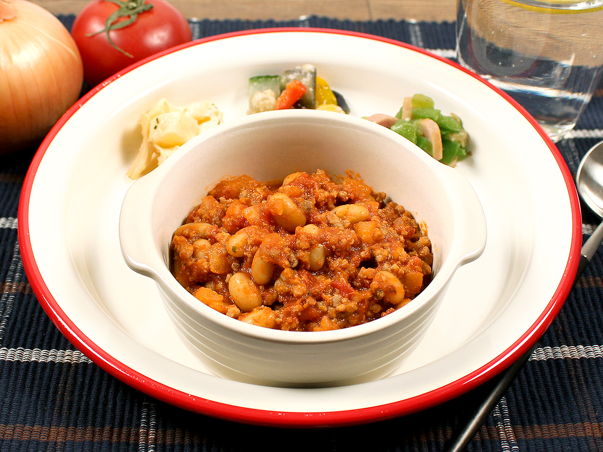 牛肉ミンチ、インゲン豆、玉葱を食べやすいマイルドなトマトソースで仕上げました。ランチや軽食にぴったりの、さっぱりとした味わいとなっております。