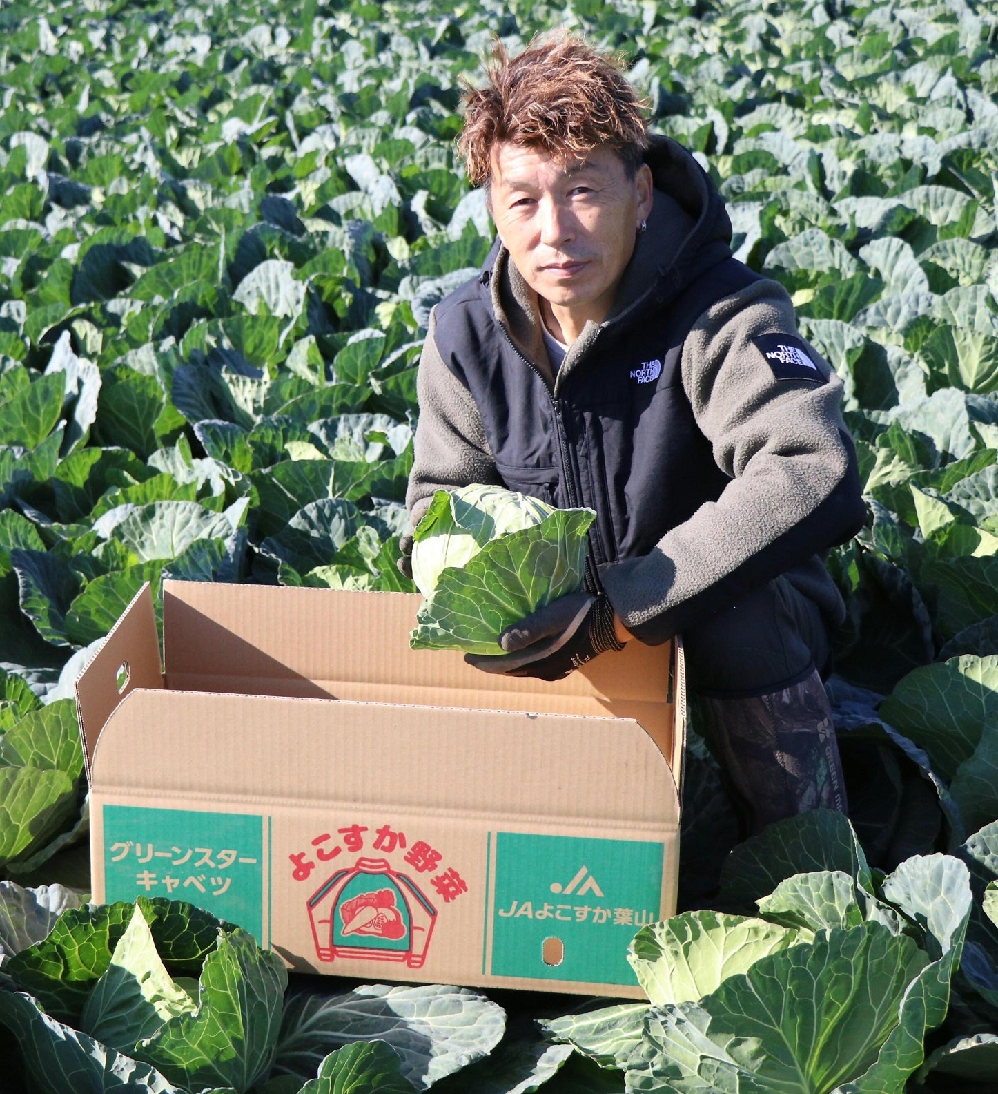 横須賀市長井で代々農家を営んでいます。「JAよこすか葉山冬・春野菜出荷部会」会長を務め、早春キャベツ・春キャベツの安定出荷や、環境に配慮したキャベツ栽培を試行・研究するなど、横須賀のキャベツづくりを支えています。
