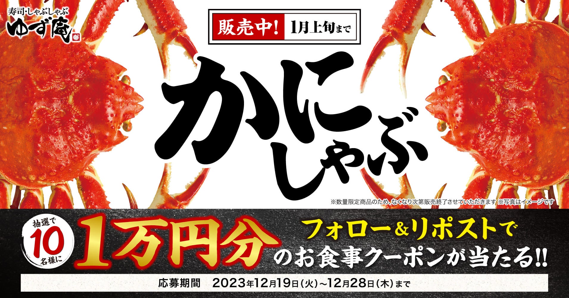 株式会社物語コーポレーション(本社:愛知県豊橋市/代表取締役社長:加藤 央之)が全国94店舗展開する『寿司・しゃぶしゃぶ ゆず庵』(以下、ゆず庵)は、本ずわいかにしゃぶの販売を記念して、本日より公式X(旧:Twitter)にてゆず庵アプリクーポン10,000円分が当たるプレゼントキャンペーンを開催いたします。