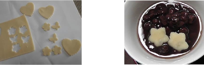 【ぜんざい・おしるこ】 クッキー型でくり抜き(左)、おもちのような用途で活用