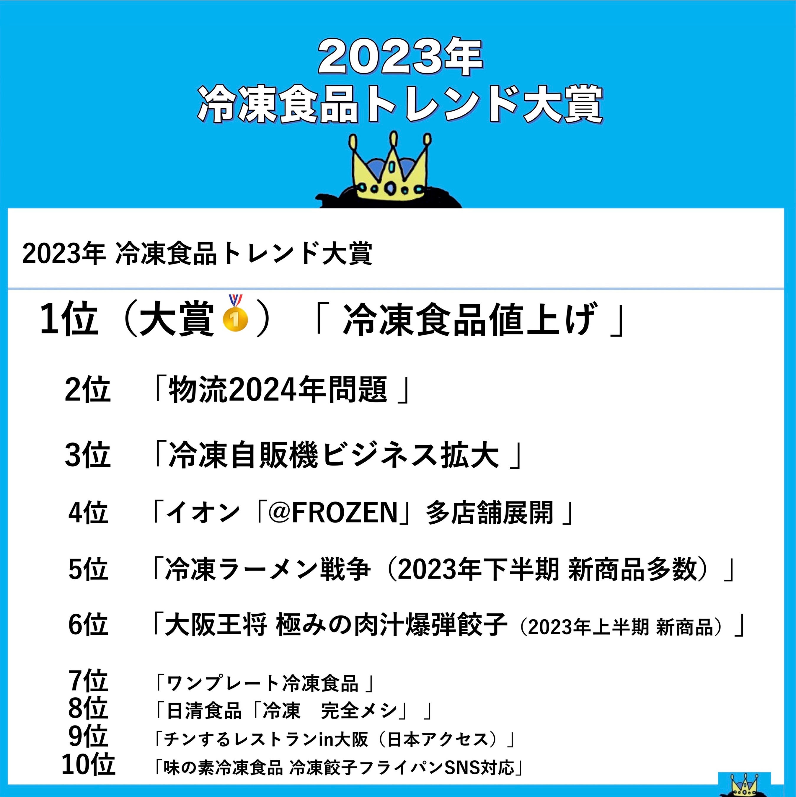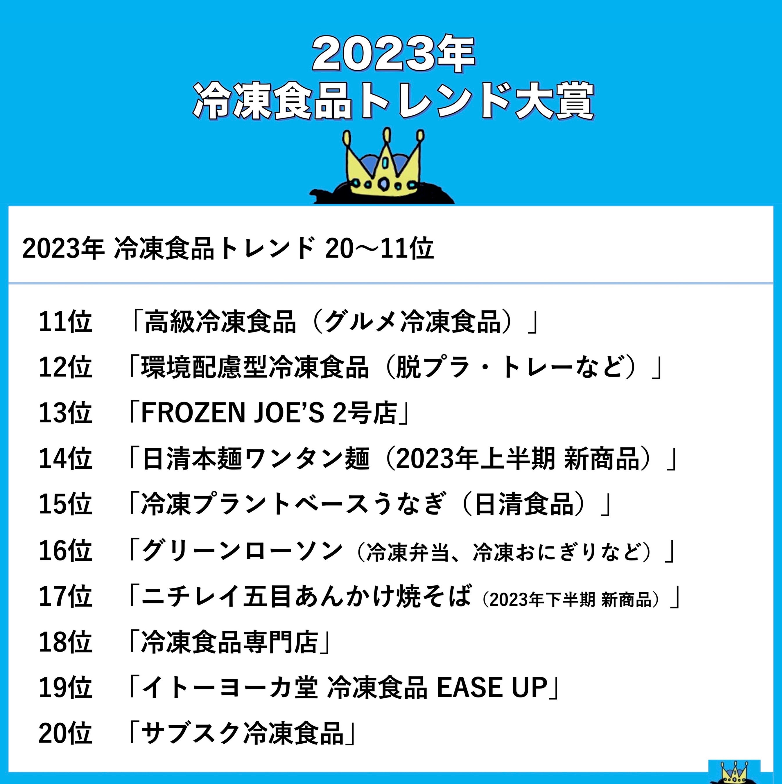 2023年冷凍食品トレンドランキングベスト10については、Youtubeオンライン生配信にて詳細を解説いたします。