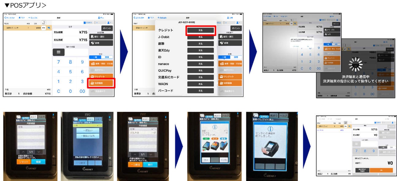 4:決済端末側に支払種別と会計金額が自動で連携されるので、決済端末側で確認