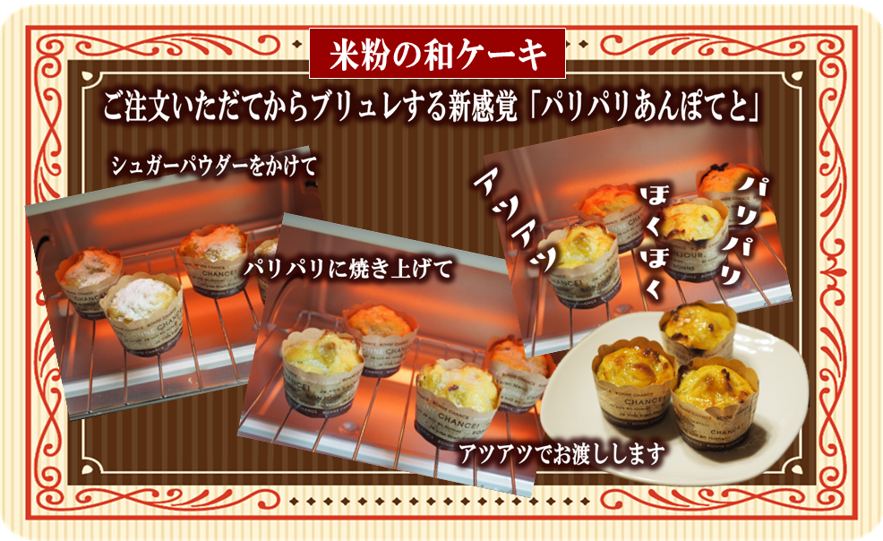 また、小麦粉を使用せず、米粉でじっくり焼き上げたグルテンフリーのこだわりの「あん和ケーキ」です。
