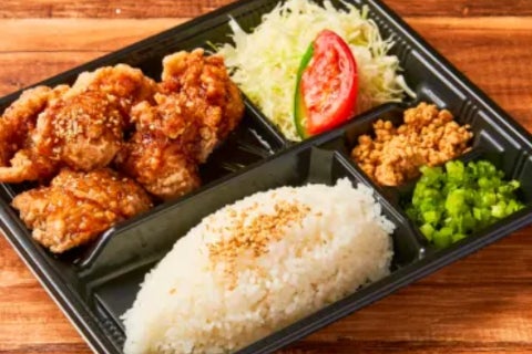 老若男女問わず愛される専門店の唐揚げに、甘い焼き鳥のタレをたっぷりかけたお弁当です。お米がどんどん欲しくなる、クセになる一品。