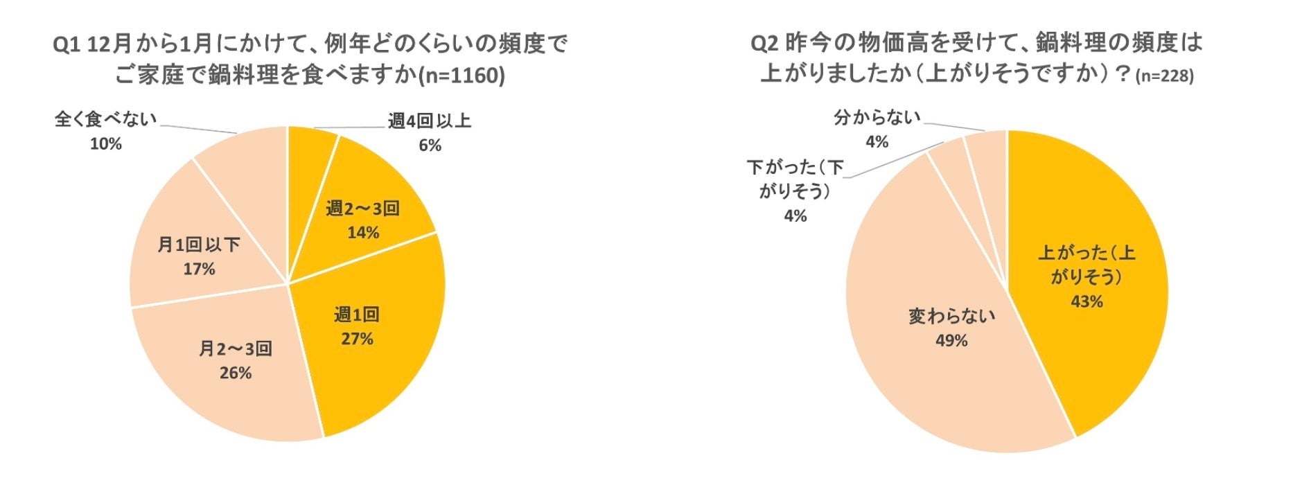 12月から1月にかけての本格的な鍋シーズンに入ると、47%が週1回以上鍋を食べることが明らかに(Q1)。