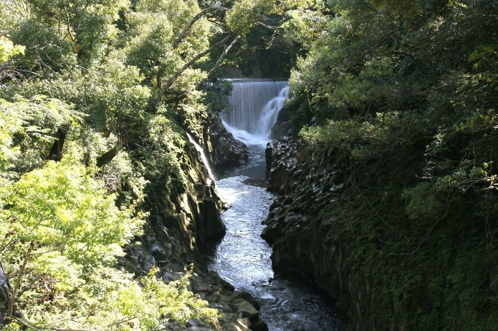 三股町は、宮崎県の南西部、都城盆地に位置し、自然豊かな「花と緑と水のまち」。大自然の恩恵を一身に浴びた米、牛、茶、ヤマメといった農畜水産物、大弓や陶芸品などの伝統工芸品が有名です。観光スポットでは、大八重「乱れ淵」から梶山の「矢ヶ淵」まで約10キロメートルにも及ぶ長い峡谷「長田峡」や、都城盆地を一望できる高台にあり春には500本の桜が楽しめる「上米公園」などが有名です。
