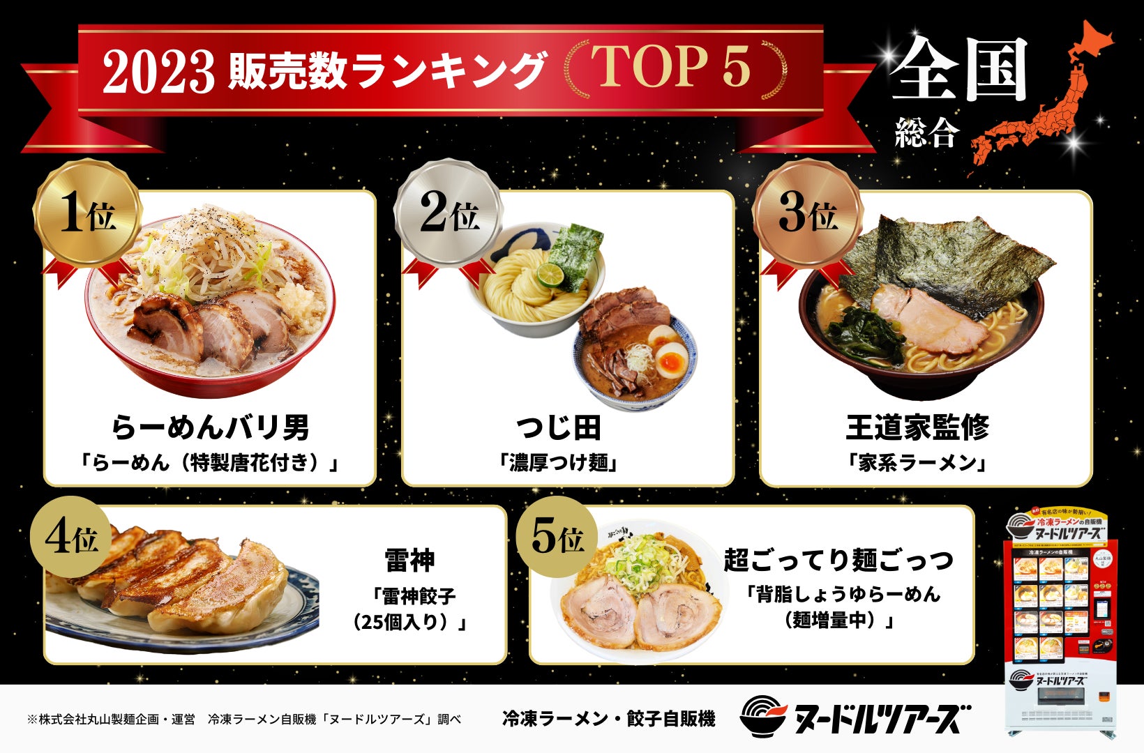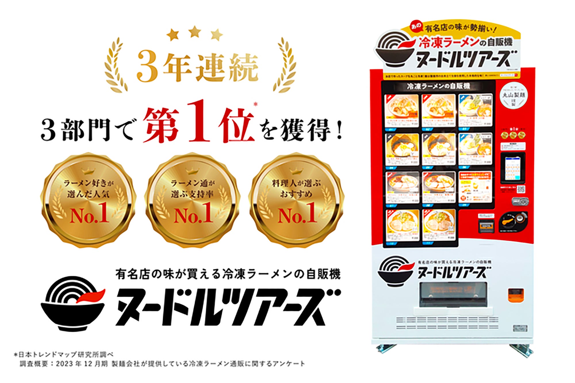 昭和33年創業の業務用麺類製造業を行う株式会社丸山製麺(本社:東京都大田区、代表取締役:丸山和浩、https://www.maru-men.co.jp/ )は、運営する『ヌードルツアーズ』( https://noodle-tours.com/ )にて販売する有名ラーメンの“本物のスープ”と丸山製麺の“麺”を使ったコラボ商品の「2023年人気商品ランキング」を発表します。 併せて、日本トレンドマップ研究所が調査した製麺会社が提供している冷凍ラーメン通販に関する市場調査において、「ラーメン好きが選んだ人気No.1」「ラーメン通が選ぶ支持率No.1」「料理人が選ぶおすすめNo.1」の3部門で3年連続第1位を獲得したことをお知らせします。