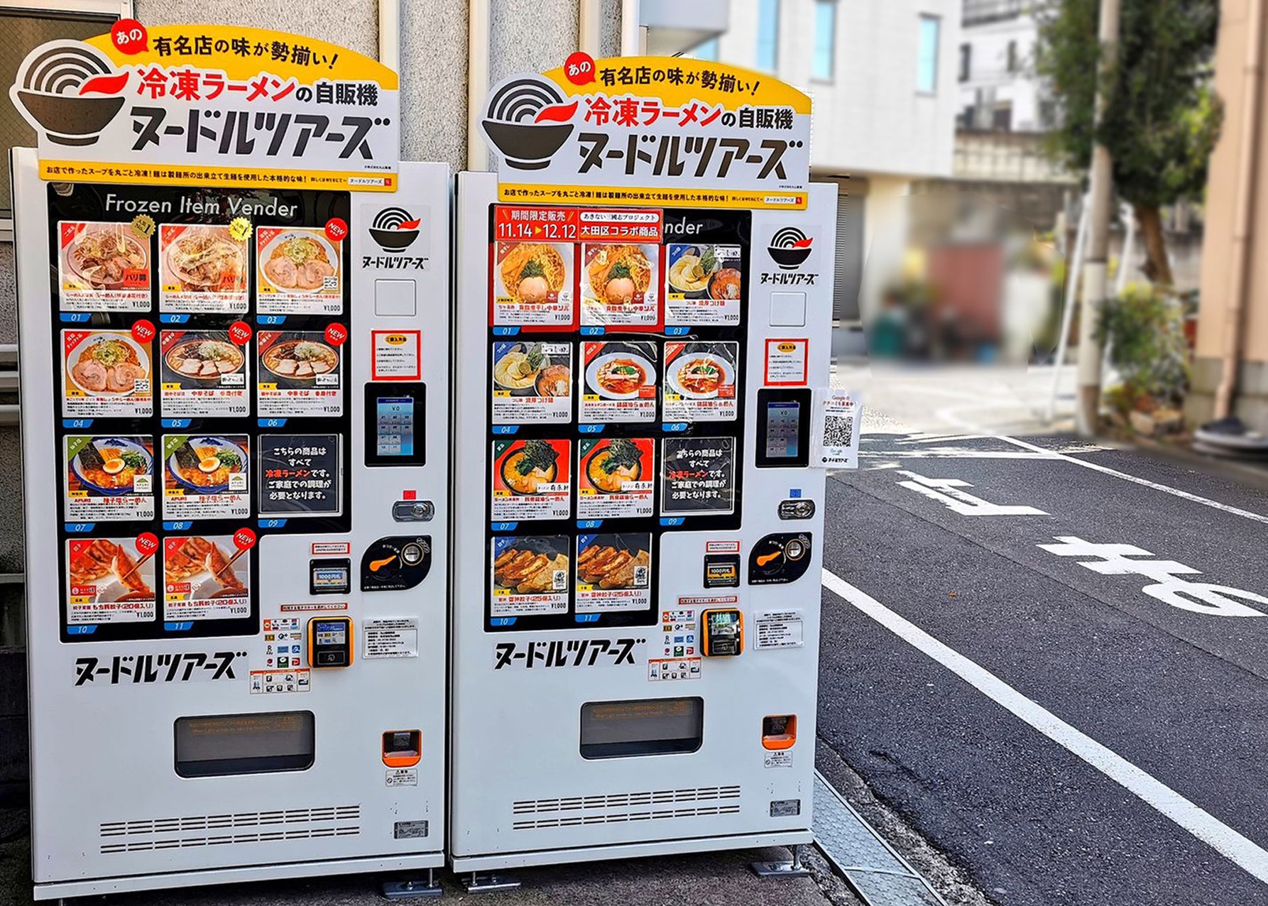 『ヌードルツアーズ』は、全国の各ラーメン店が作ったスープと、厳選した原料と衛生管理を徹底した丸山製麺の製麺所で製造した冷凍生麺を使用したコラボ商品を冷凍で販売しています。価格は1つ1,000円で、自販機や無人販売所で販売しており、24時間いつでも好きな時に購入可能です。スープは湯せん、麺はゆでるだけのカンタン調理で、自宅にいながら日本全国のラーメン屋さんのラーメンを味わうことができます。2021年3月のサービス開始以降、全国25以上のラーメン屋さんと提携し、設置数は日本全国200箇所以上、販売食数は累計50万食を突破しました。今後も多種多様な業界や企業との連携により成長を続け、全国への設置を目指します。
