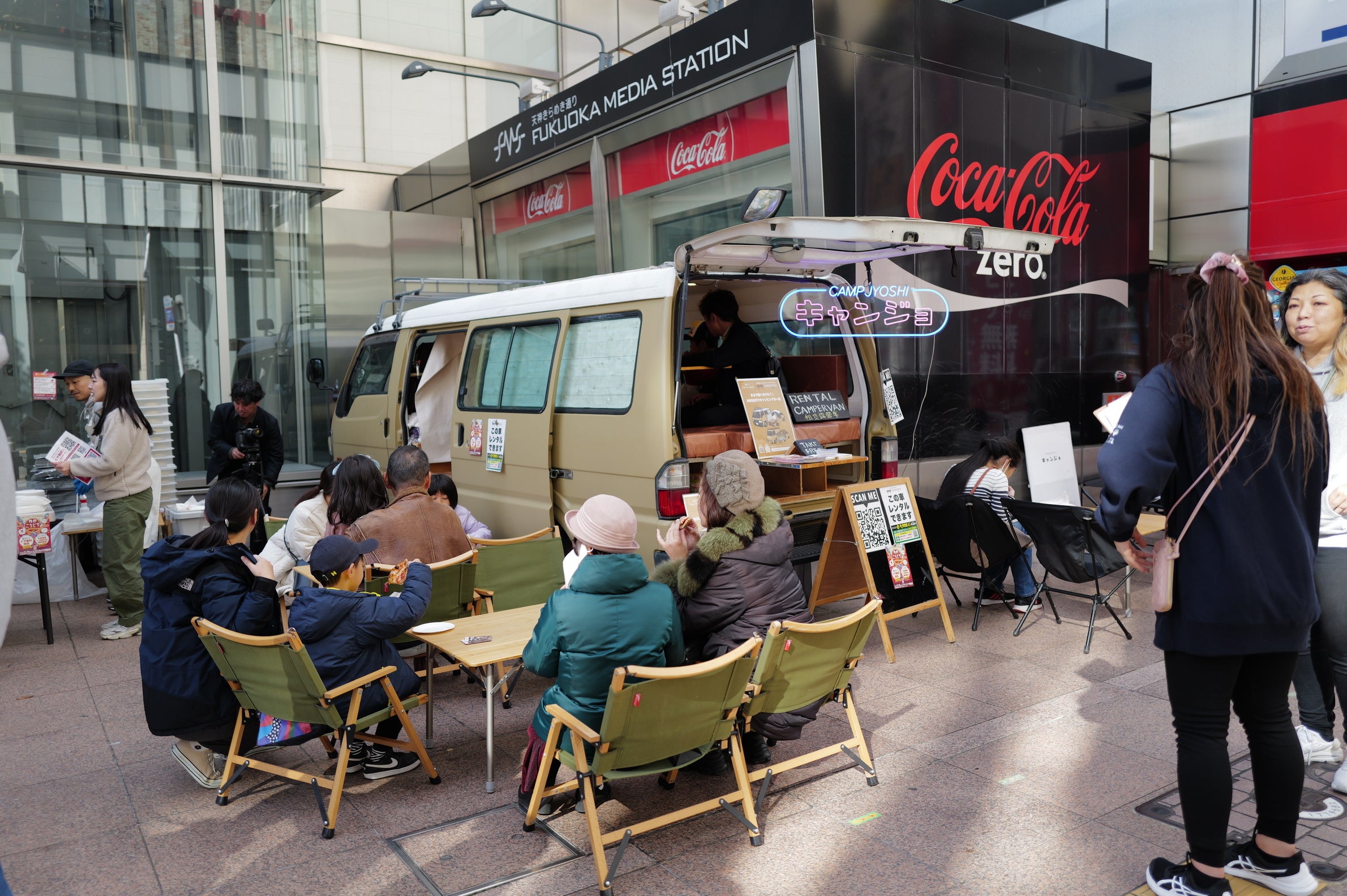 当イベントにおいて、キャンプ女子株式会社はピザイーティングスペースとしてキャンピングカーの設置と、アウトドアチェア・テーブル(30席)を提供しました。