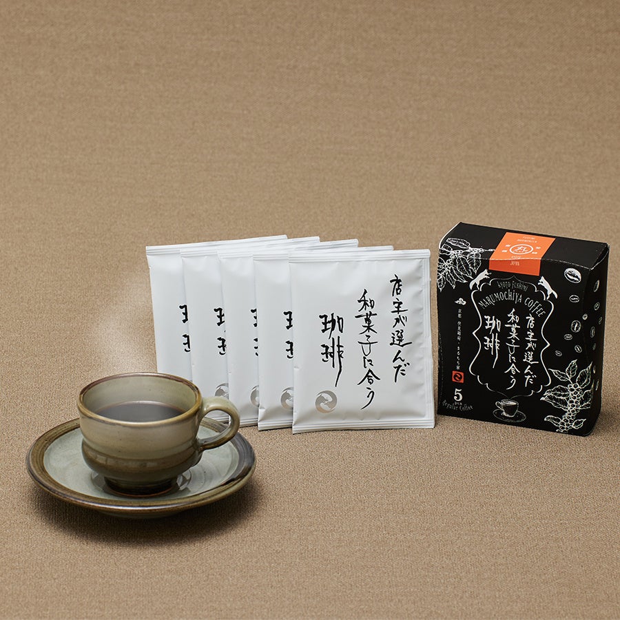 「まるもち家」店主が選んだ、和菓子のもつ優しい甘さを引き立てるオリジナルブレンドのコーヒーです。爽やかな風味でクセのない飲みやすさとほのかな酸味が特徴です。和菓子は日本茶と一緒にお召し上がりいただくシーンが多いですが、和菓子とコーヒーの組み合わせをぜひ一度お試しいただきたくセレクトしました。