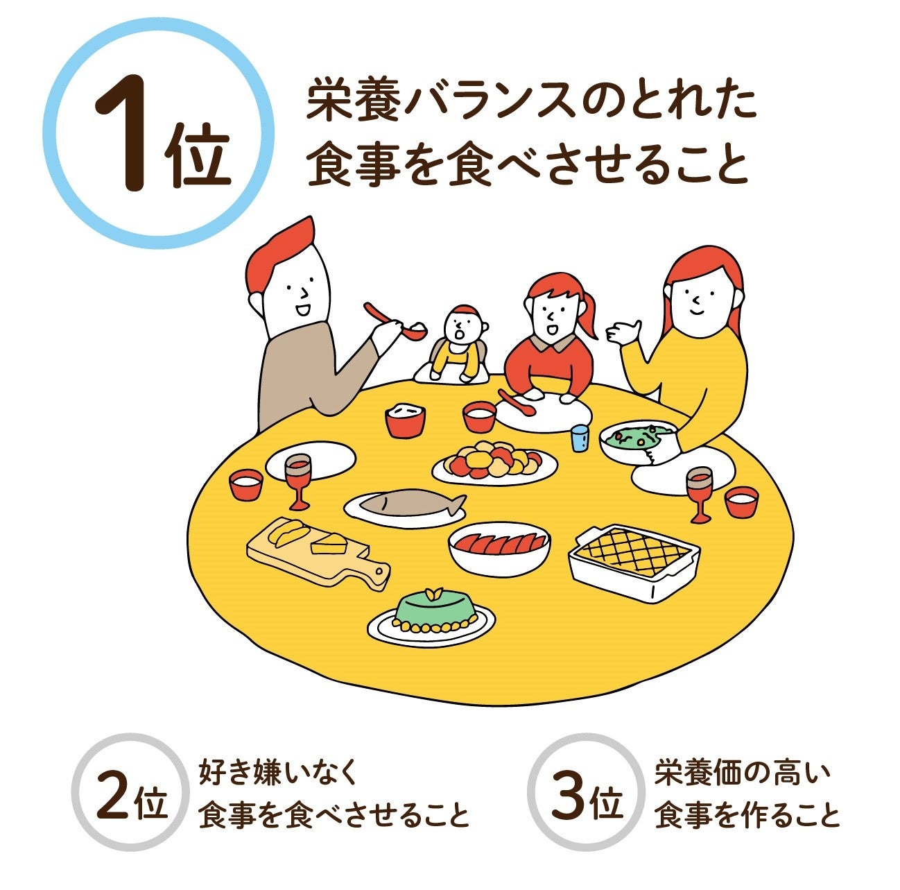 まず、子供の食事について意識していることを調査した結果、「栄養バランスのとれた食事を食べさせること」と答えた人が最多の54.7%、次いで「好き嫌いなく食事を食べさせること」と答えた人が45.0%となり、スポーツを頑張る子供に対し、栄養バランスのよい食事を十分にとってほしいと考える親が多いことが明らかになりました。