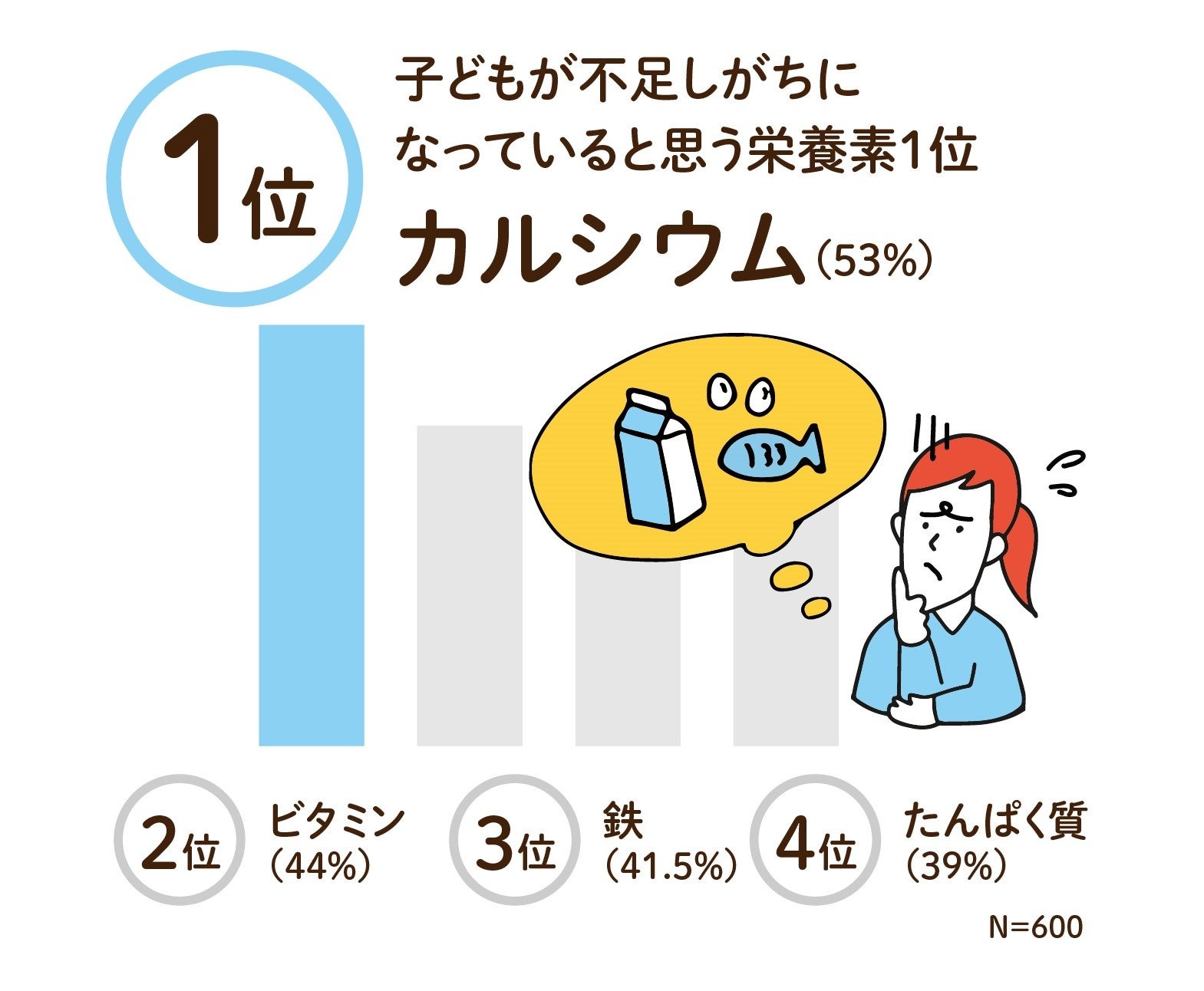 子供に不足しがちになっていると思う栄養素、第1位は「カルシウム」