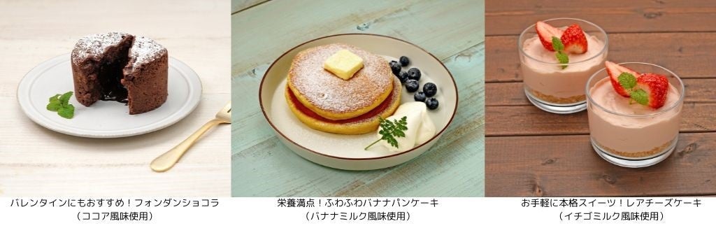 人気のココア風味、イチゴミルク風味、バナナミルク風味の3味をご用意。発売前の試飲アンケートでは9割※のお子様が「おいしい!」と回答しています。