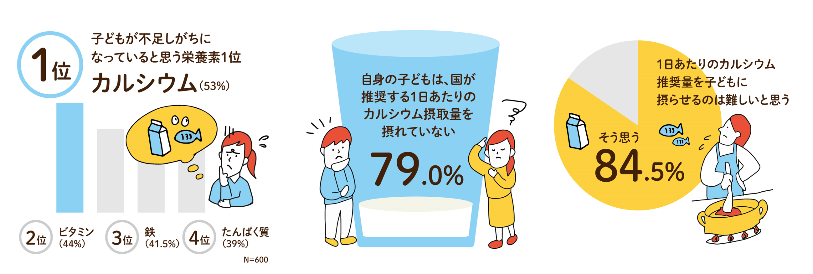 一方、「子供が十分なカルシウム量を摂取できていない」と答えた人は約85%!