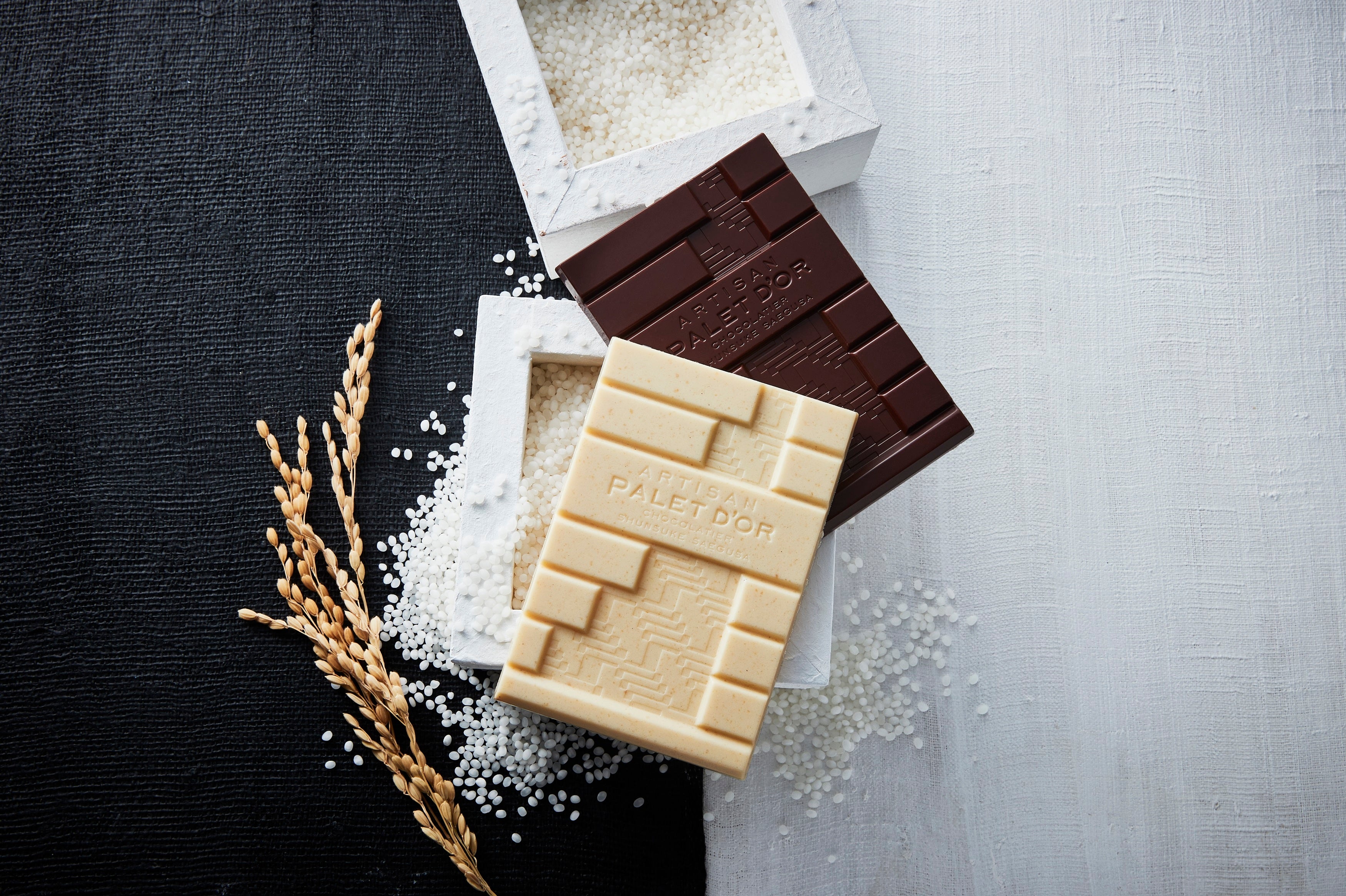 山口県の銘酒「獺祭」の酒粕をパウダーにして加えた、日本酒の香りとカカオを楽しむタブレット。ビターミルクタイプには、中南米、トリニダード・トバゴ島産のカカオ豆を使用し、カカオの焙煎香とプラムのような酸味に酒粕の味わいをマリアージュ。ホワイトタイプには、カカオバターの搾油から手掛けるカカオ分50%の自家製ホワイトチョコレートをブレンドし、すっきりとした口どけと、上品な甘みを感じる甘酒のような味わいに。