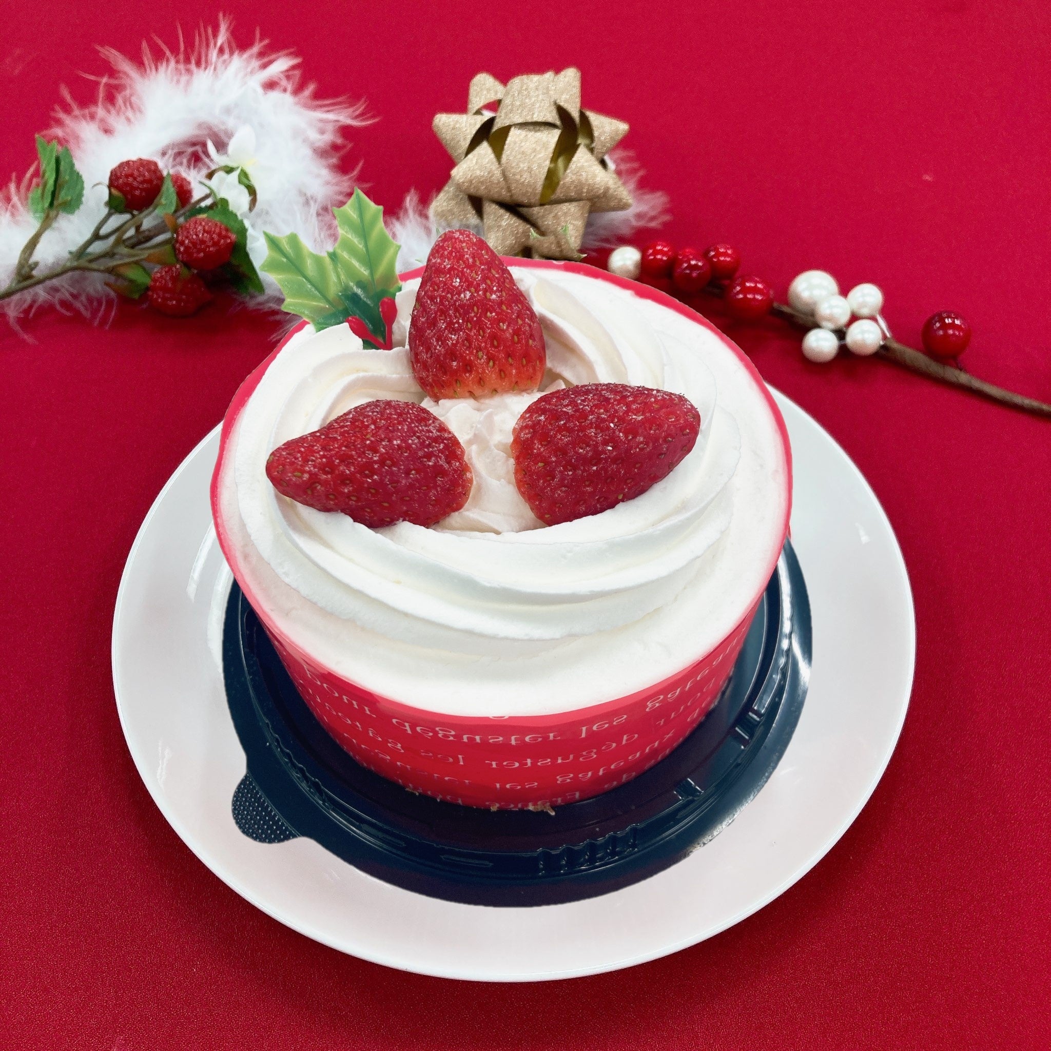 スポンジ生地にホイップクリーム、ストロベリーソース、フレッシュな苺を3つ合わせた王道のショートケーキです。乳脂肪47%の濃厚な北海道産生クリームを配合したオリジナルクリームを使用し、クリームの美味しさにこだわっています。ご家族でシェアして楽しめる大きさのショートケーキです。