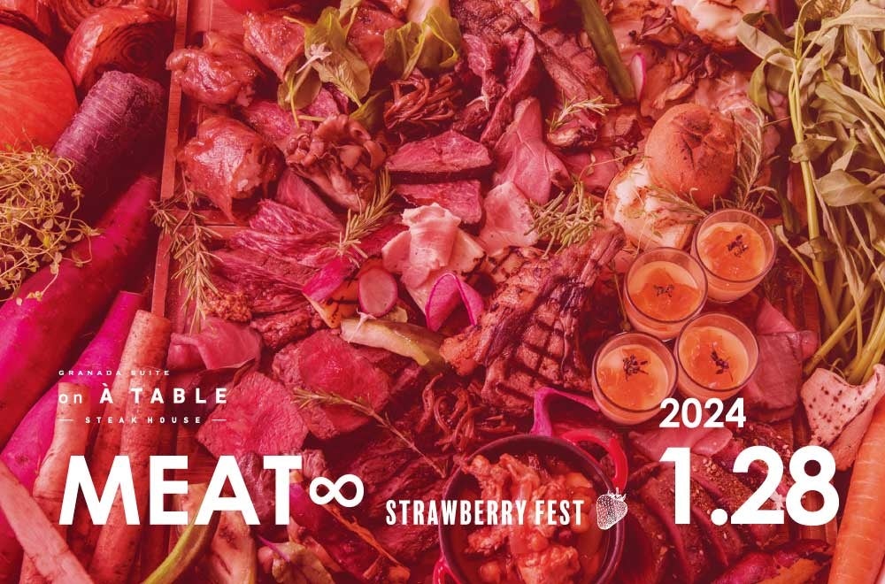 全国でホスピタリティビジネスを展開する感動創出企業の株式会社ポジティブドリームパーソンズ(本社:東京都渋谷区、代表取締役社長:宮下 慶輔、以下PDP) が運営する福岡・中洲川端のレストラン「GRANADA SUITE on À TABLE(グラナダスィート オン ア ターブル)」にて、ご好評いただいております「MEAT infinity(ミートインフィニティー)」と、いちごを思う存分にお楽しみいただける「Strawberry Fest」のコラボレーション ブッフェイベントを1月28日(日)に限定開催いたします。