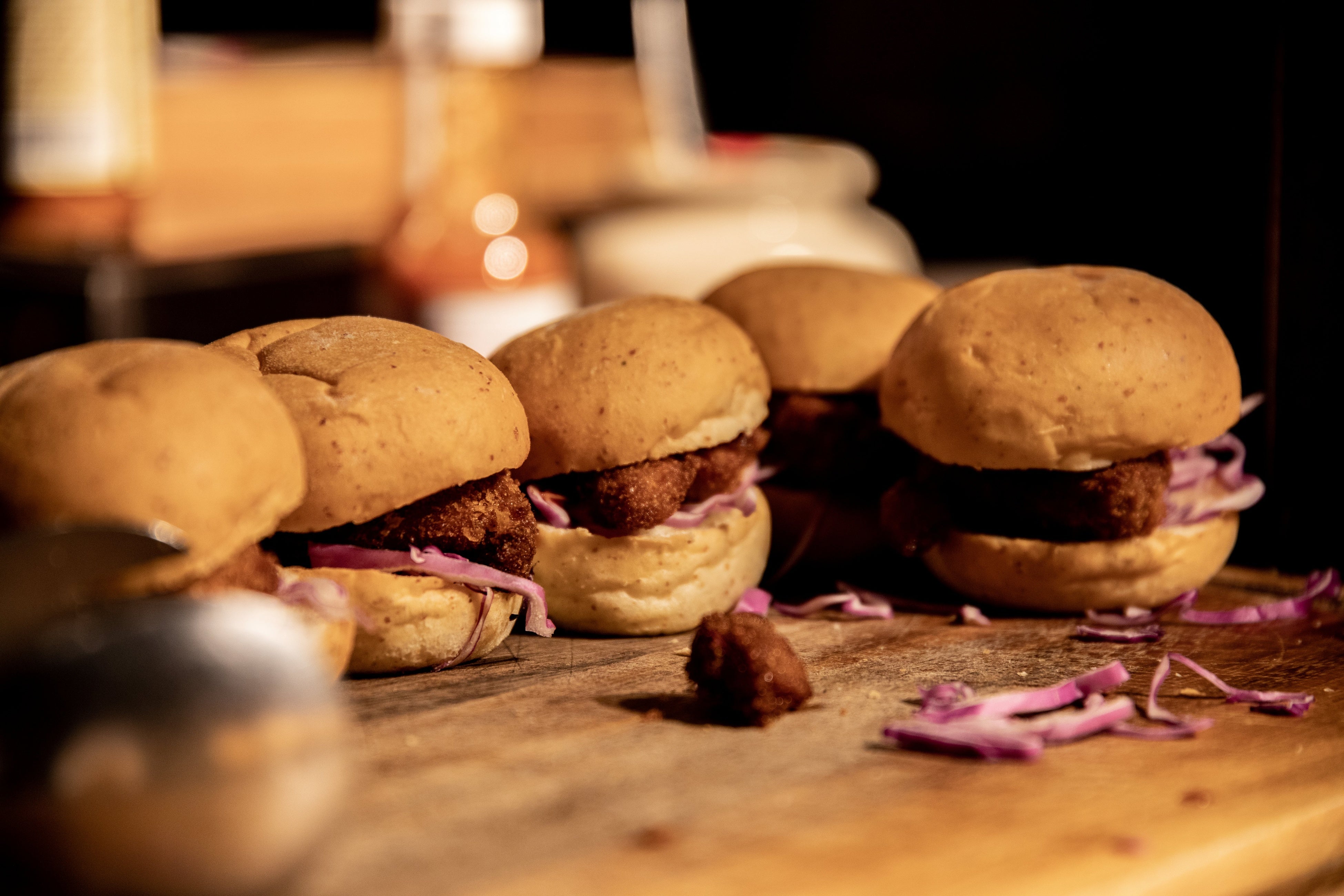 こだわりのパティと焼きたてバンズ、クランベリーBBQソースのバーガー