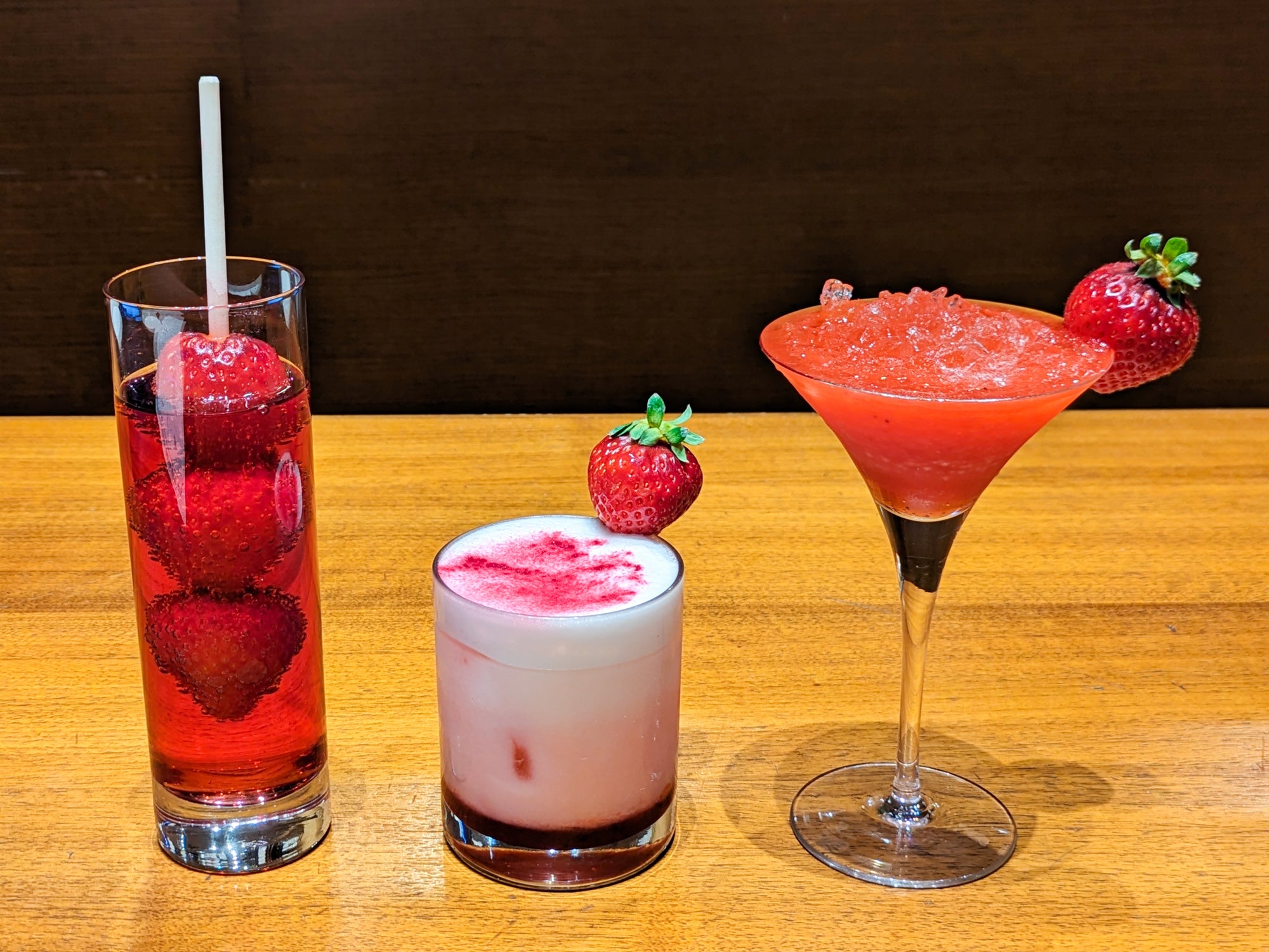 宮崎県「都農ワイナリー」のフルーティーな香りと清涼感のあるロゼスパークリング“キャンベル・アーリー”に熊本県「森田百姓園」のいちごをまるごと3つも使用した贅沢なカクテル。やさしい甘さのワインといちごのマリアージュをお楽しみください。