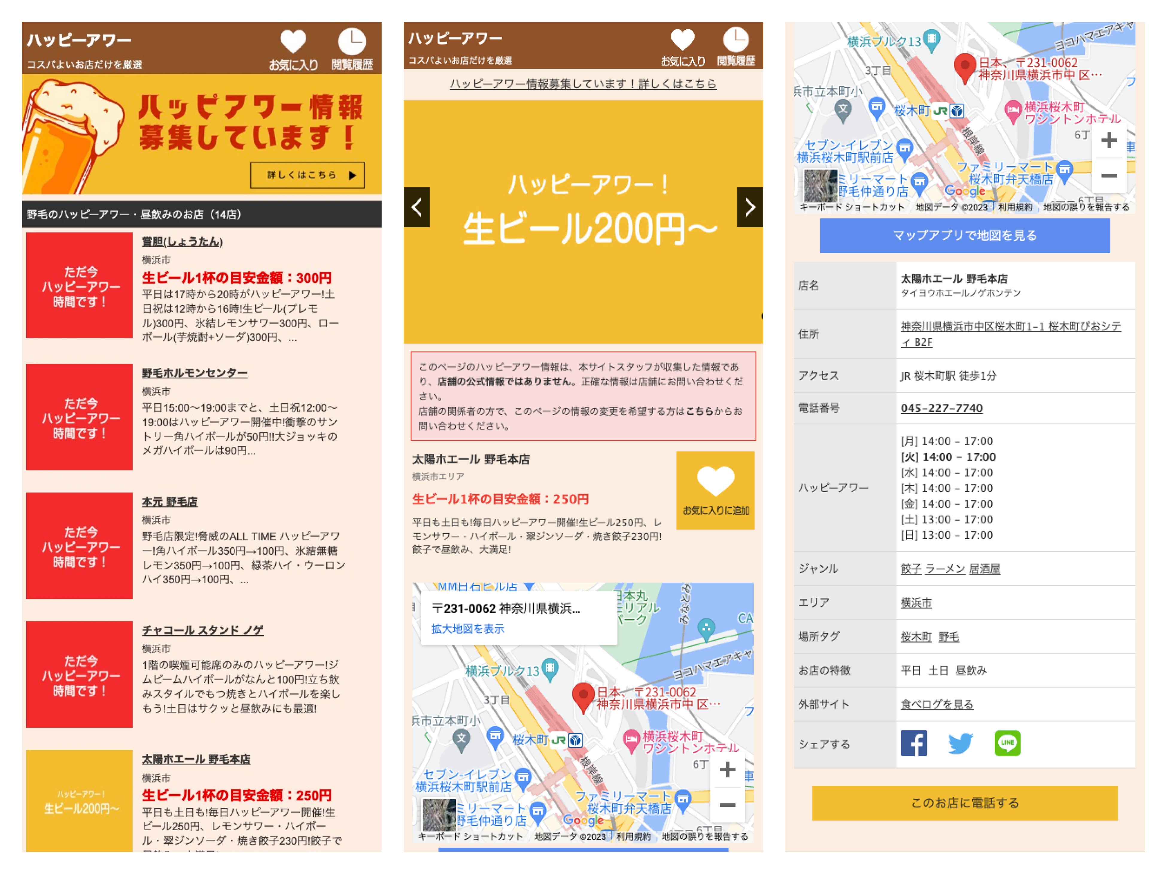 「ハッピーアワー」は、その名の通り、ハッピーアワー情報のみに特化したグルメサイトです。