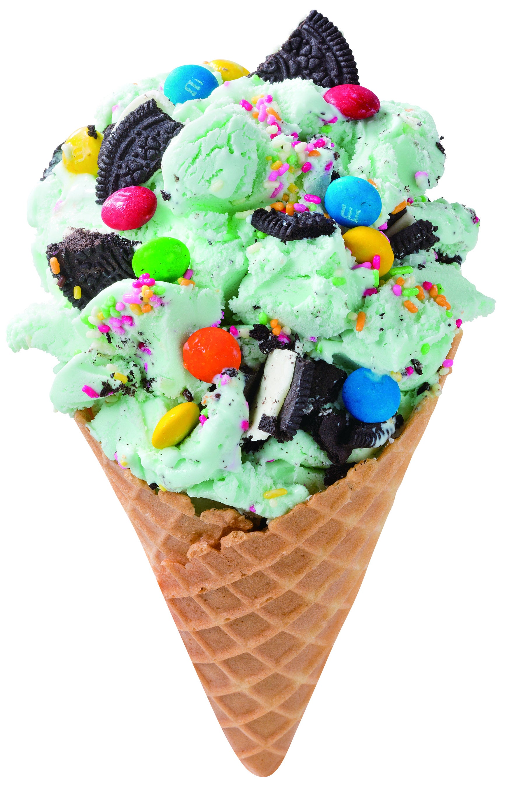 爽快感のあるオリジナルミントアイスクリームに、エム&エムⓇ、オレオⓇクッキー、レインボースプリンクルをミックス。見た目もPOPで、まるでお菓子のようなアイスクリームで、食べ進めるたびに様々な味や食感を楽しめる・ワクワクする人気商品です。