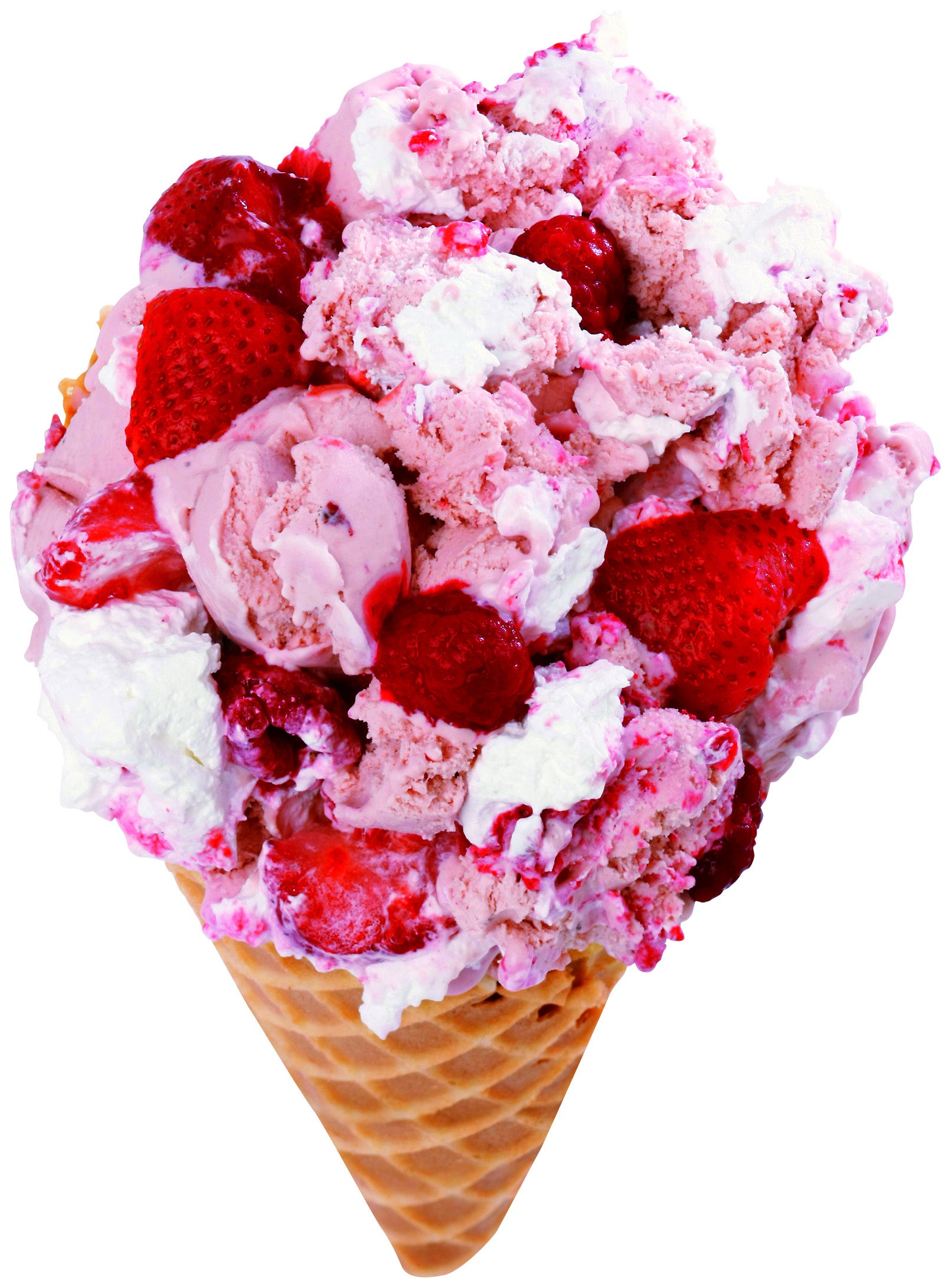 甘みの強いストロベリーアイスクリームに、ストロベリーとラズベリーの果肉、ホイップクリームをたっぷりミックスしたクリエーションアイスクリーム。甘酸っぱいベリーの果肉と甘いホイップクリームの相性は抜群!見た目も華やかな人気商品です。