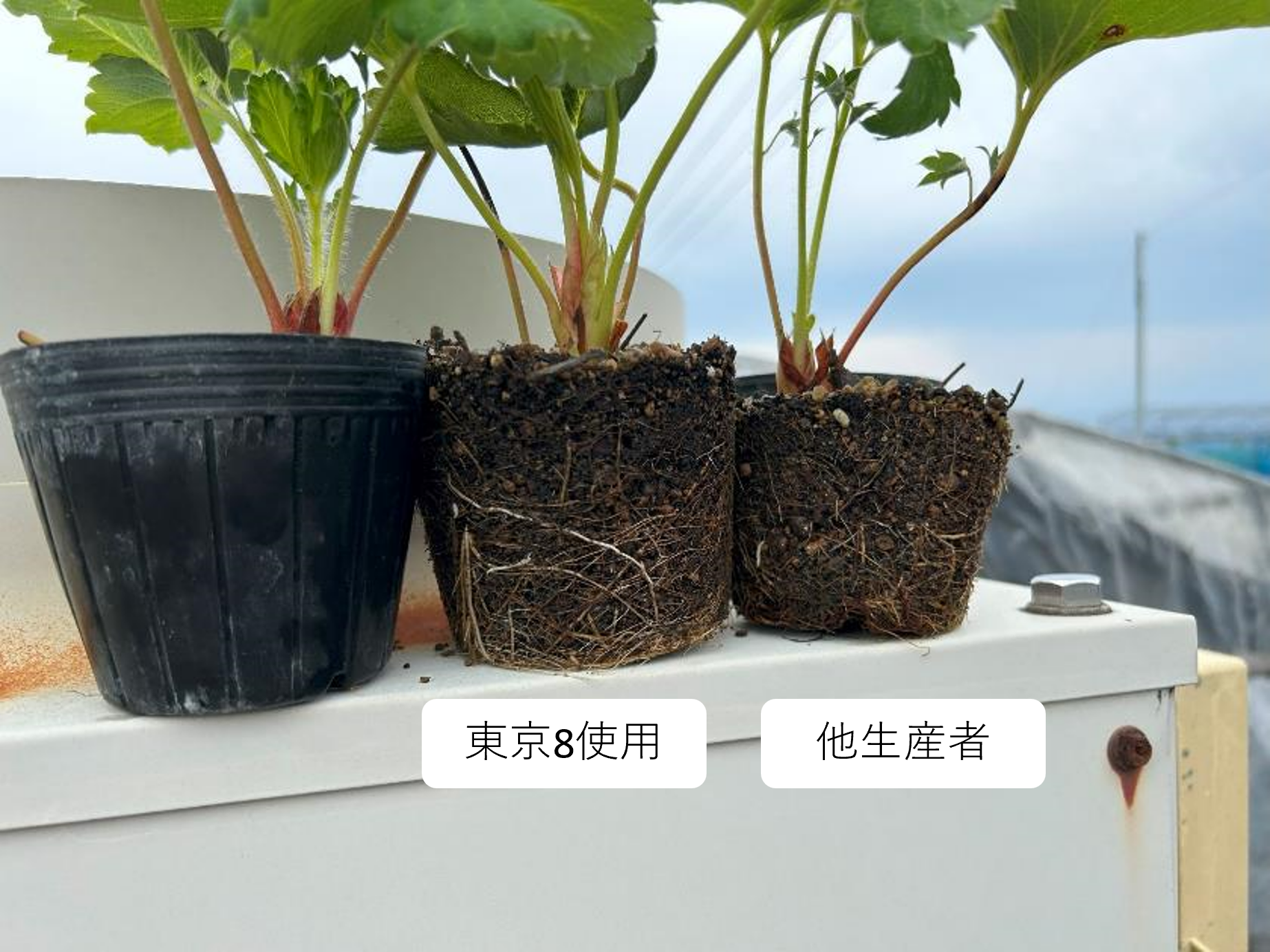 根張りも東京8を散布した苗の方が、根が発達しています。