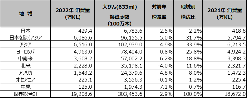 ・2021年・2022年の日本の消費量は株式会社醸造産業新聞社の推計による