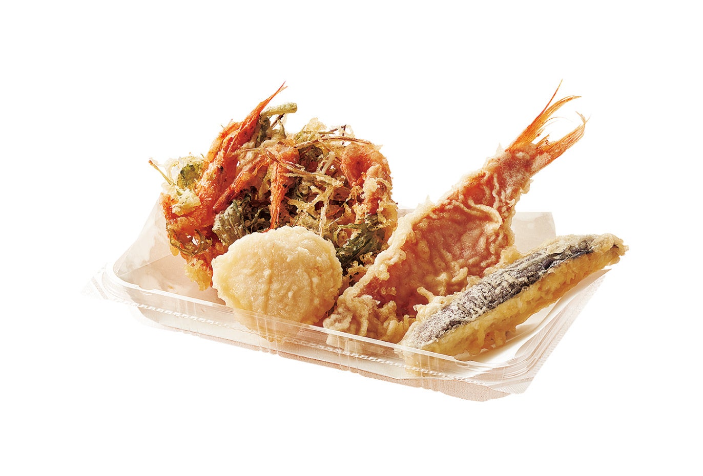 むきえびとまいたけを組み合わせたつまみ揚げは香り高く、いか・イタヤ貝・たまねぎのつまみ揚げは食感良く仕上げました。