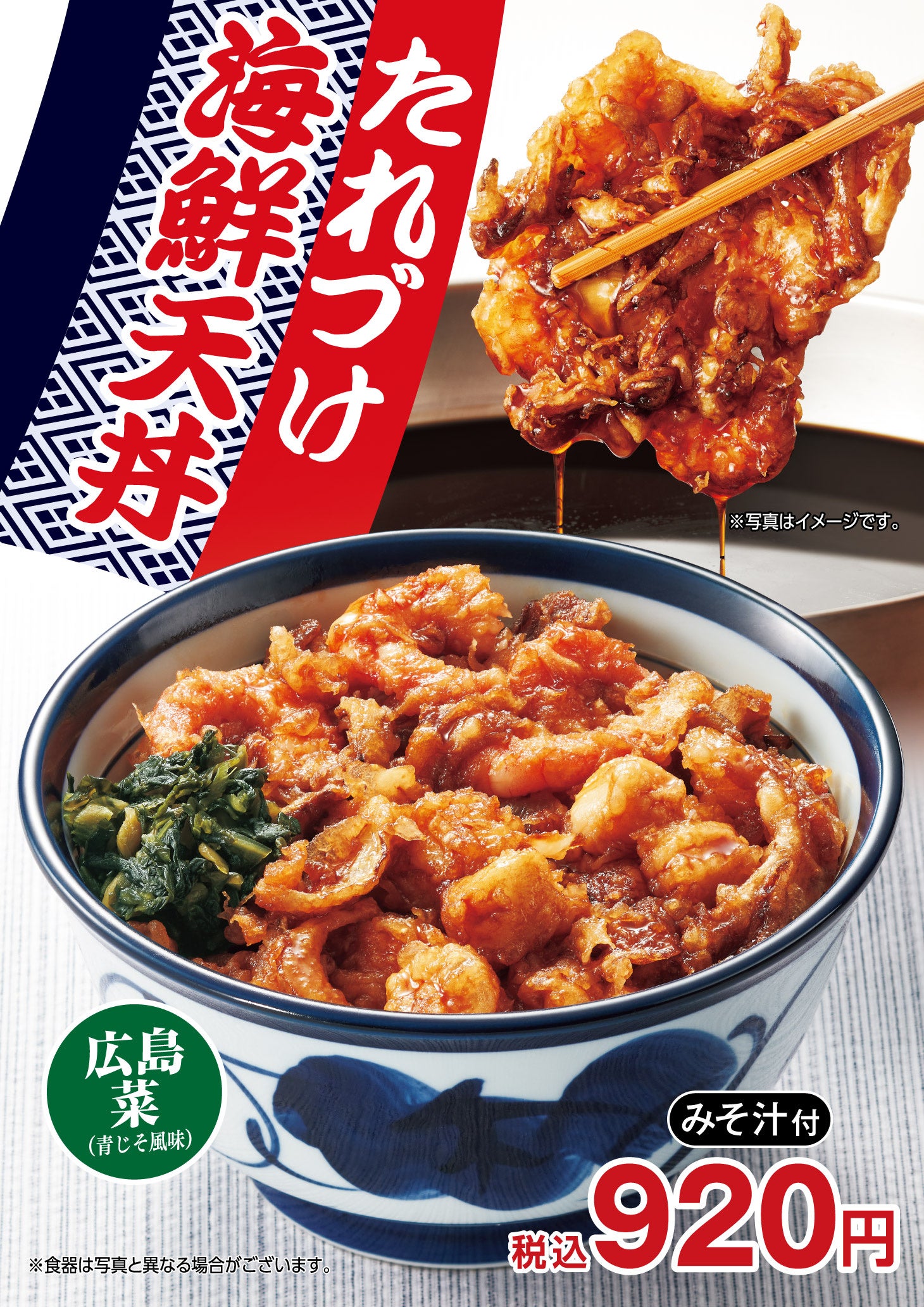 揚げたての天ぷらを、てんや自慢の甘辛だれにたっぷりくぐらせた「たれづけシリーズ」からは、昨年も大好評だった『たれづけ海鮮天丼』がリニューアルして再登場。