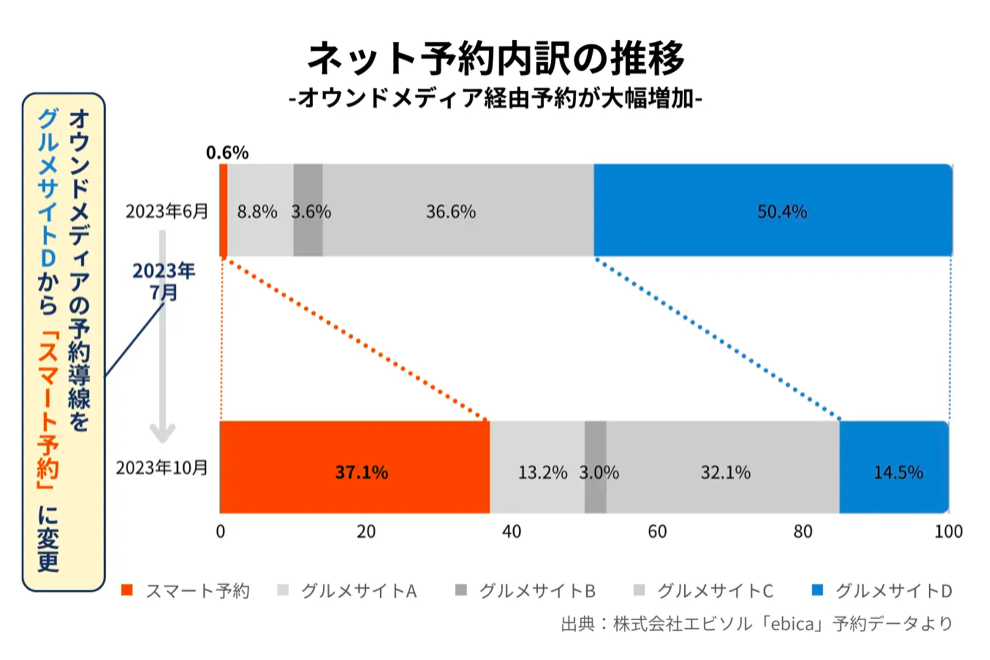 ■最適な予約動線の確立により、オウンドメディア経由の予約数が全体の約4割まで増加