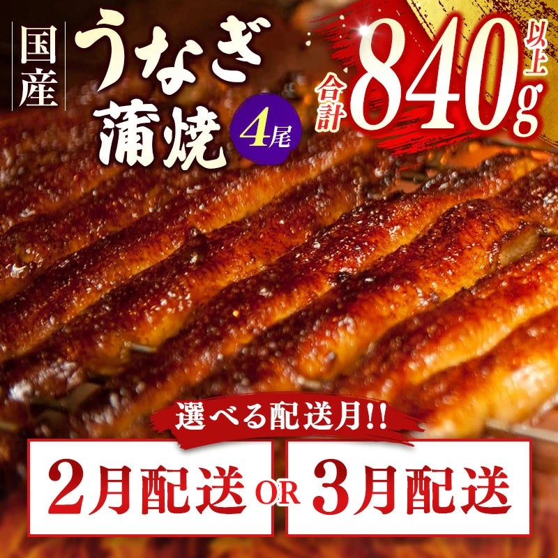 ■<選べる配送2月・3月>鰻楽 国産うなぎ蒲焼4尾(無頭)計840g以上