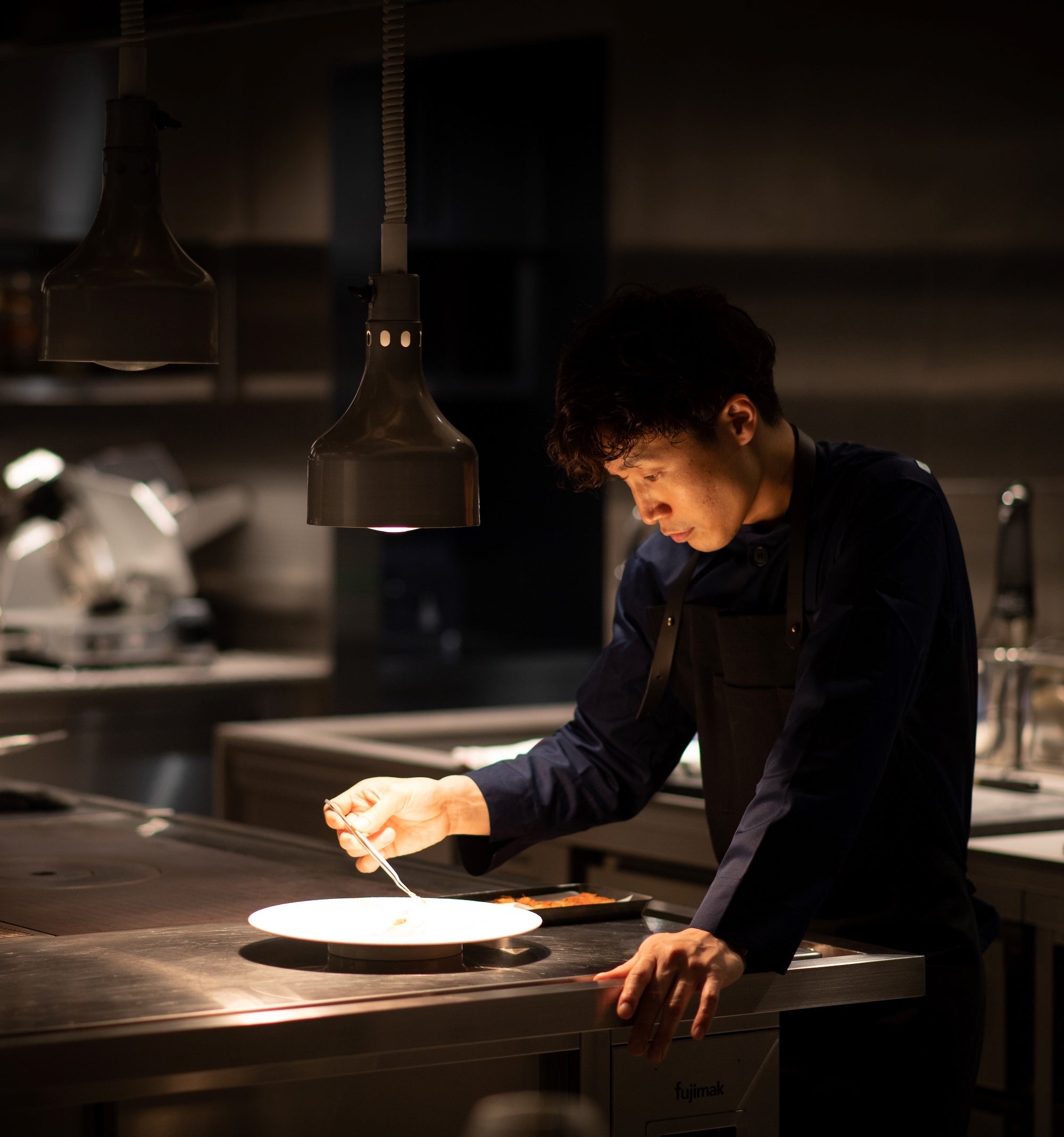 1985年、福岡県生まれ。半導体エンジニアから料理人へ転向。都内フレンチレスト ランを経て、2011年に渡仏し、ミシュラン二つ星「Passage 53」で研鑽を積む。 帰国後、食品製造からバルなどの飲食店まで食にまつわるさまざまな見識を広げ、2017年に再渡仏。世界各国のシェフやアーティストとのコラボレーション、イベントのフードオーガナイズを務める。帰国後、フリーランスの料理人として活動する傍ら2021年より、日本橋馬喰町「nôl」のディレクターに就任、同店をミシュラン一つ星へ導く。日本最大級の若手料理人コンペディションRED U-35にて3度にわたり準グランプリを受賞。新たな美味しさの創出をテーマに、食×医療、アート、AIなど垣根を越えて交わり多様な活動に取り組む。同店は3年連続で『ミシュランガイド東京』一つ星(現代風料理)を獲得し、2024年に初となるミシュラングリーンスターにも選出。